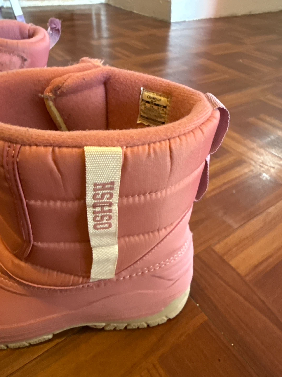 60These are a cute pair of pink winter boots from OshKosh B'gosh! They're perfect for keeping little feet warm and dry during the colder months Needs some cleaning otherwise in good condition