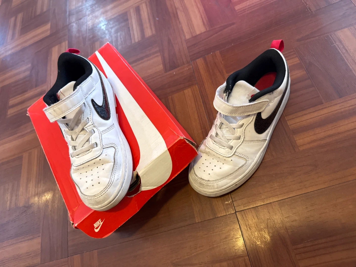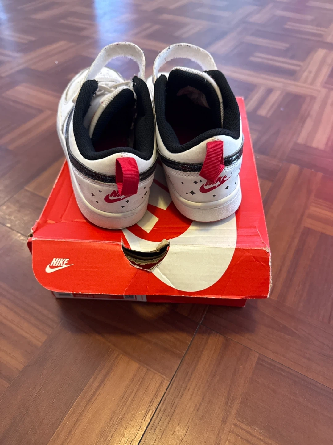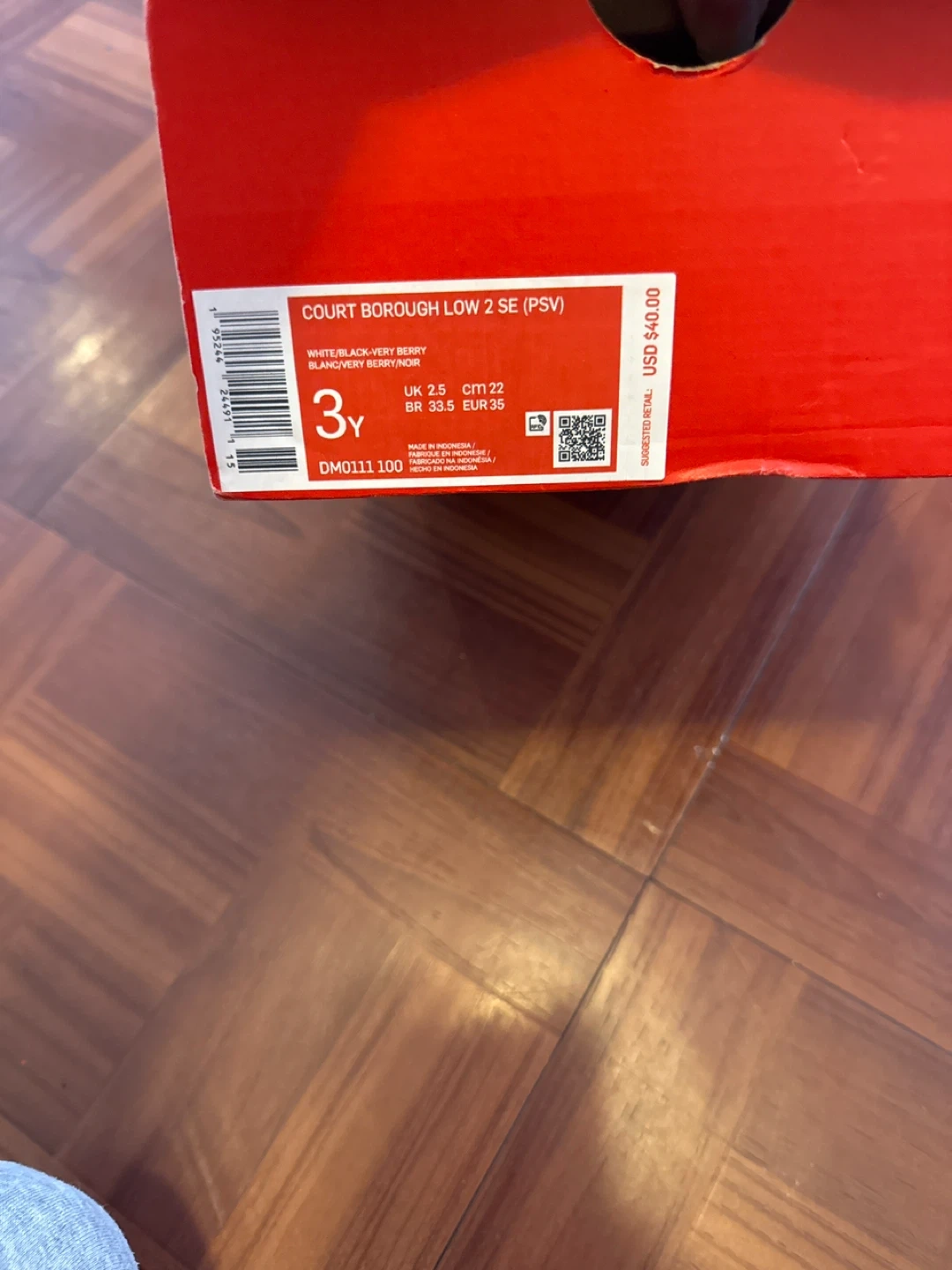 76Selling a pair of Nike Court Borough Low 2 SE (PSV) shoes in size 3Y. The shoes are white/black/very berry. The original retail price was $40.00. They come with the original box