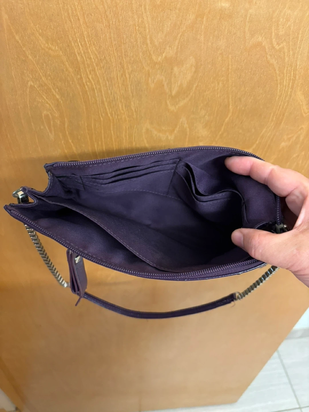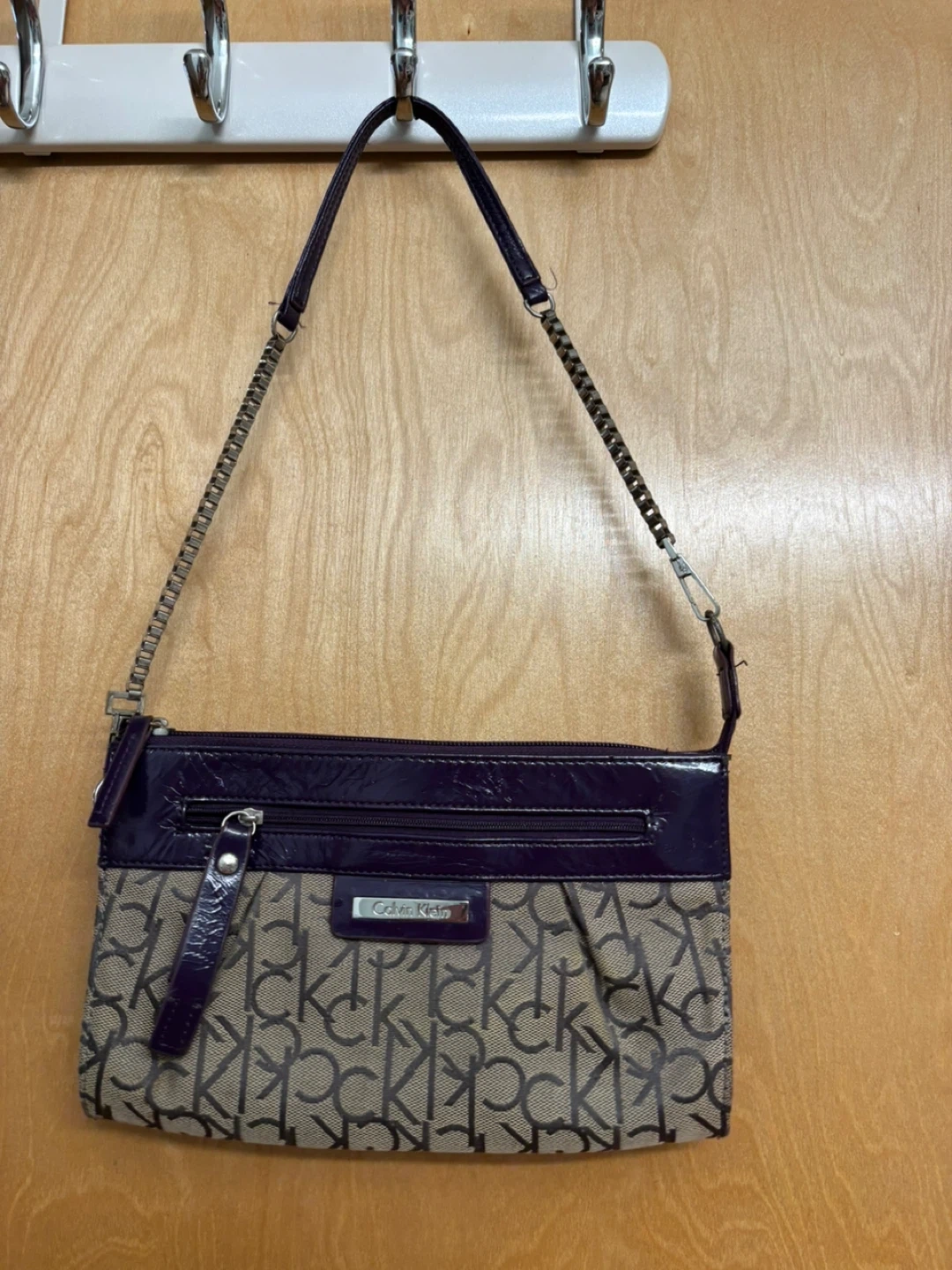 46Selling a Calvin Klein shoulder bag in purple! It's in great condition and has a unique chain strap. Perfect for a night out or everyday use