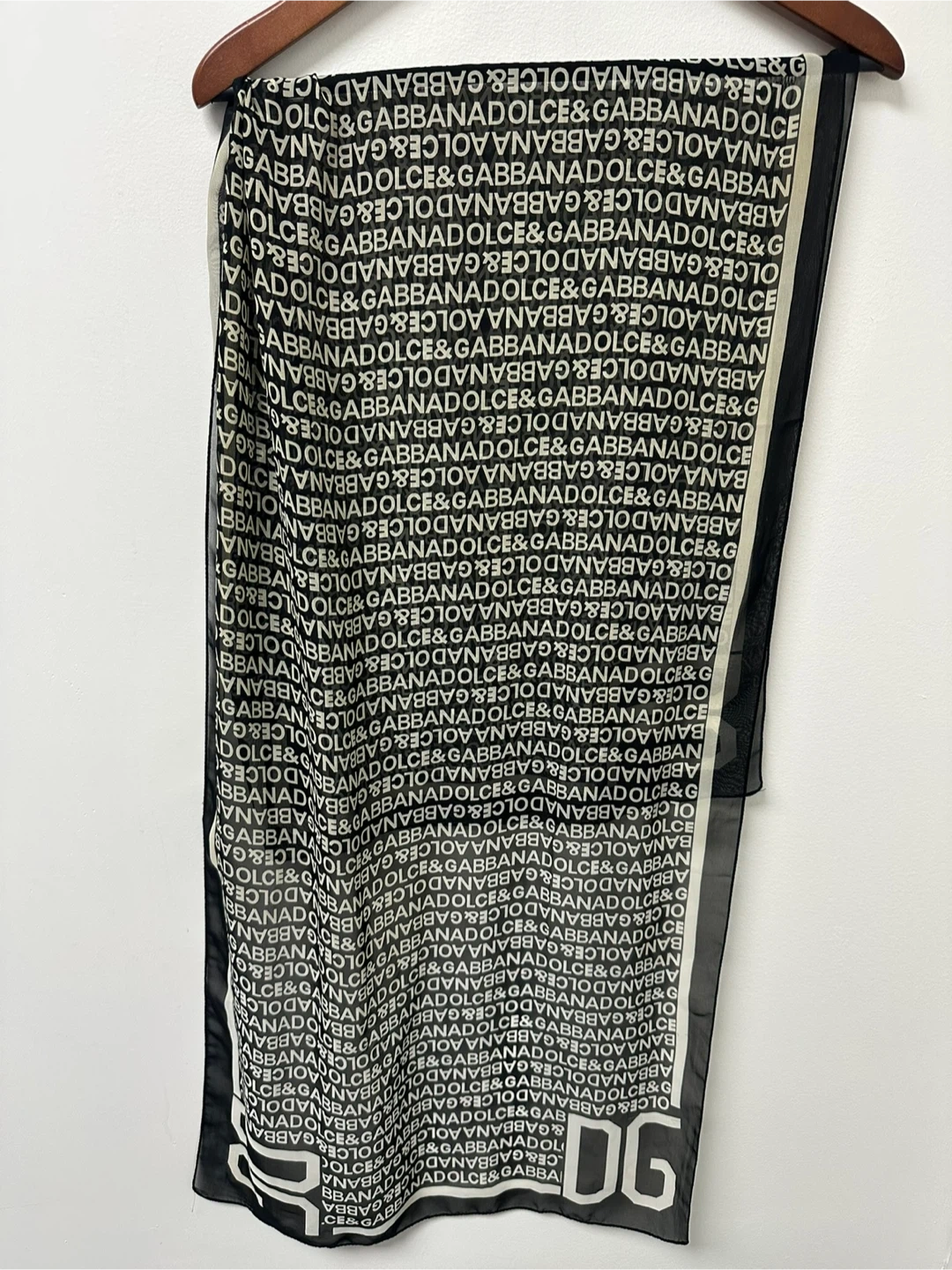 188Selling a Dolce & Gabbana scarf in a classic black and white colour scheme. The scarf features the iconic Dolce & Gabbana logo printed throughout. It's in great condition and would make a stylish addition to any outfit