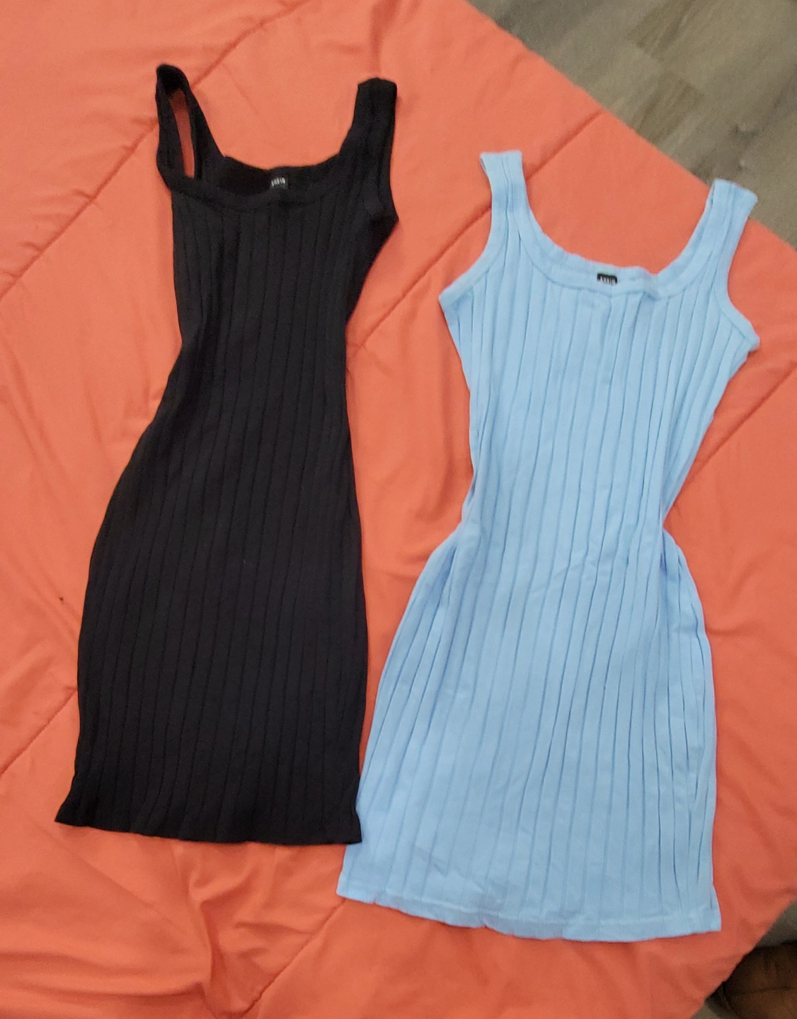 Selling two Shein ribbed tank dresses! One is black and the other is a light blue. They are both in great condition and ready for a new home
