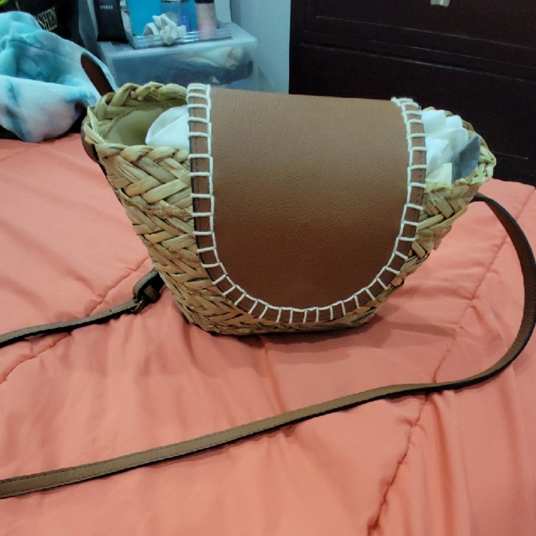 15This is a cute straw crossbody bag from Universal Thread! It has a brown faux leather flap and a long strap, perfect for carrying your essentials. The bag is in great condition and ready for a new home