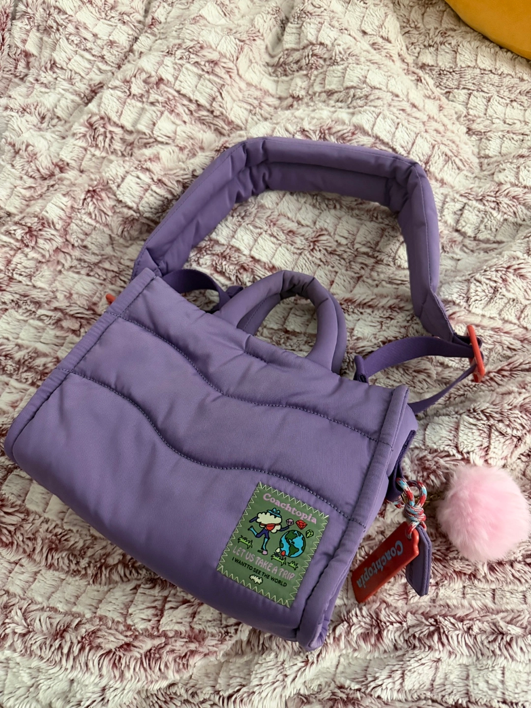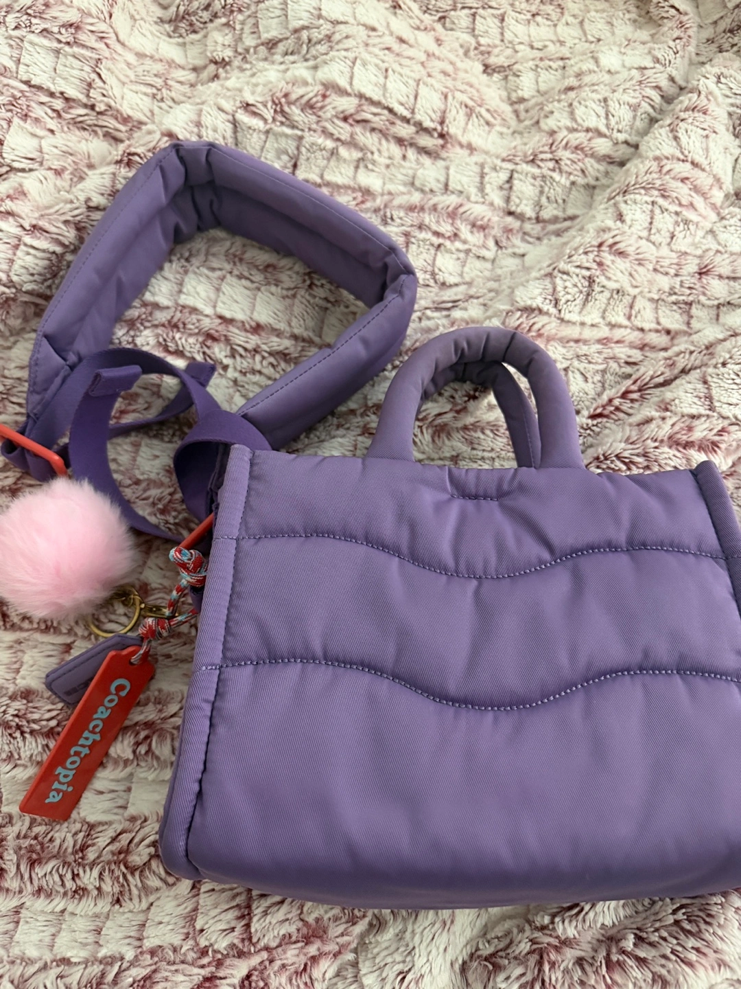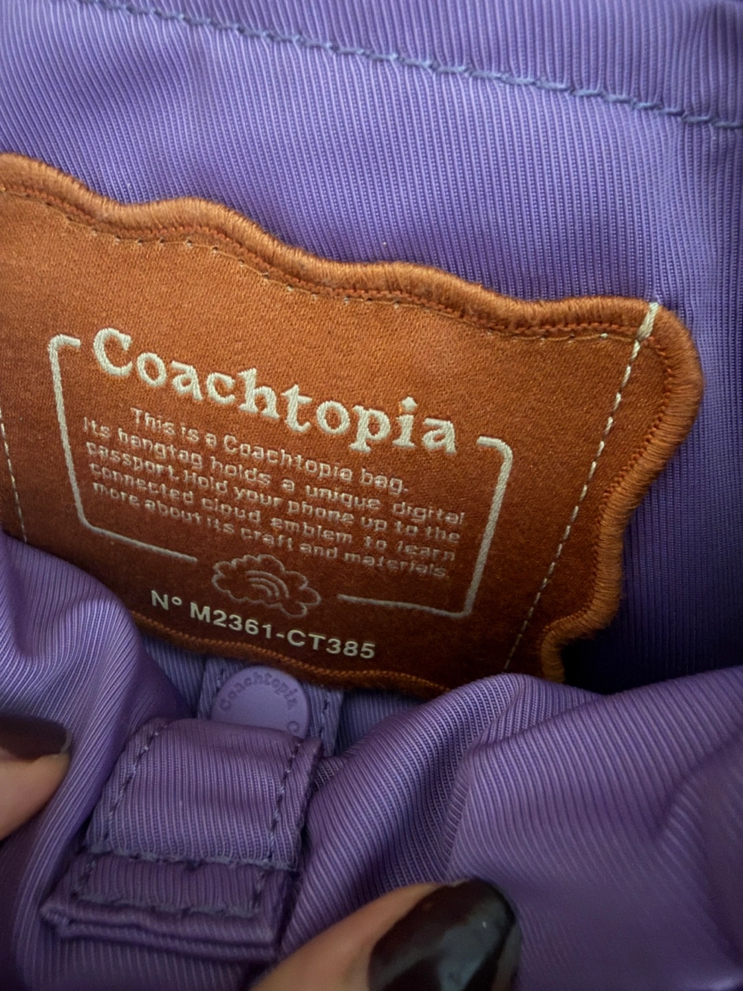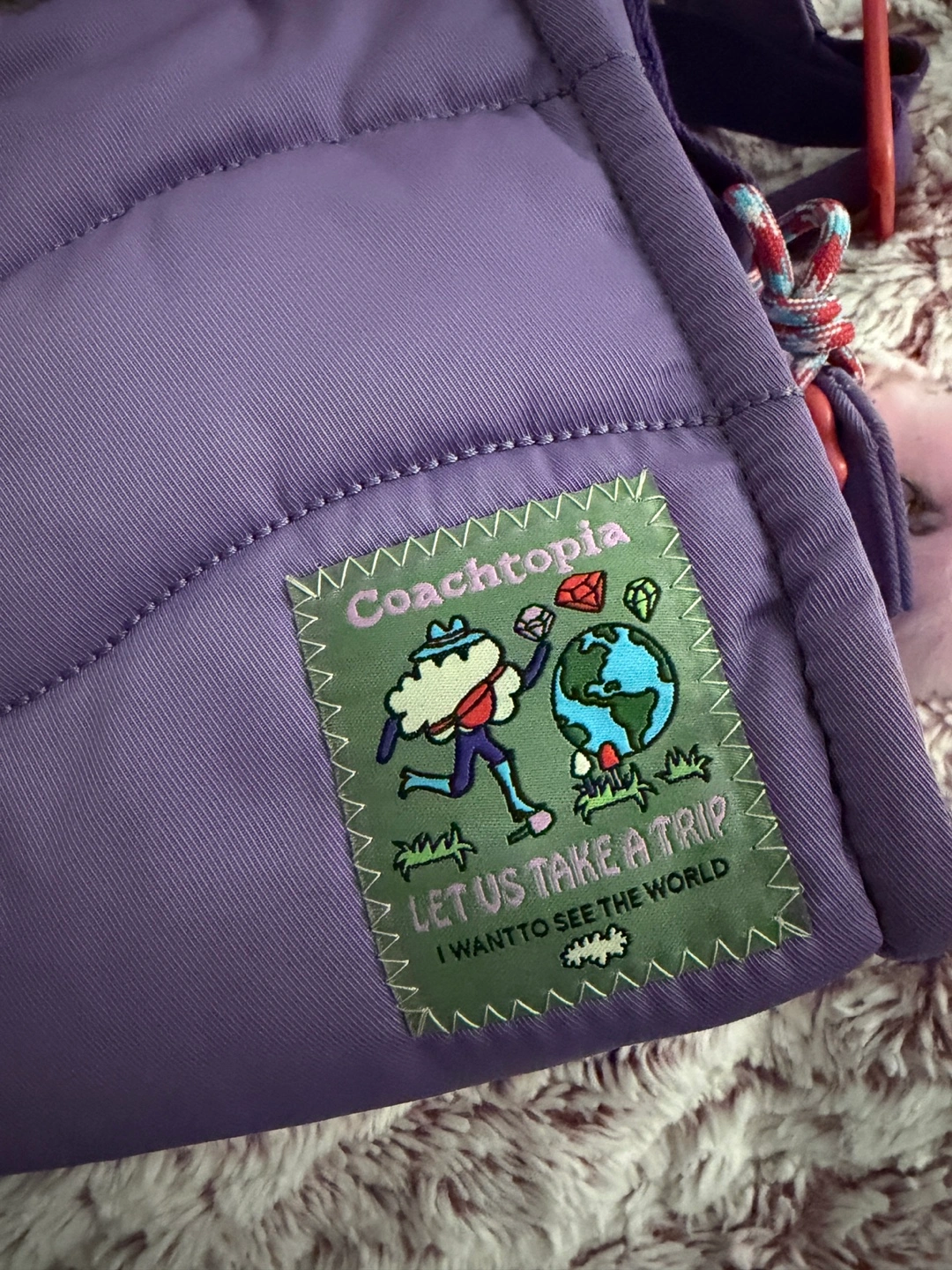 10Selling a cute purple Coachtopia bag! It's a puffy style and has a fun Coachtopia design on the front. Perfect for carrying your essentials in style
