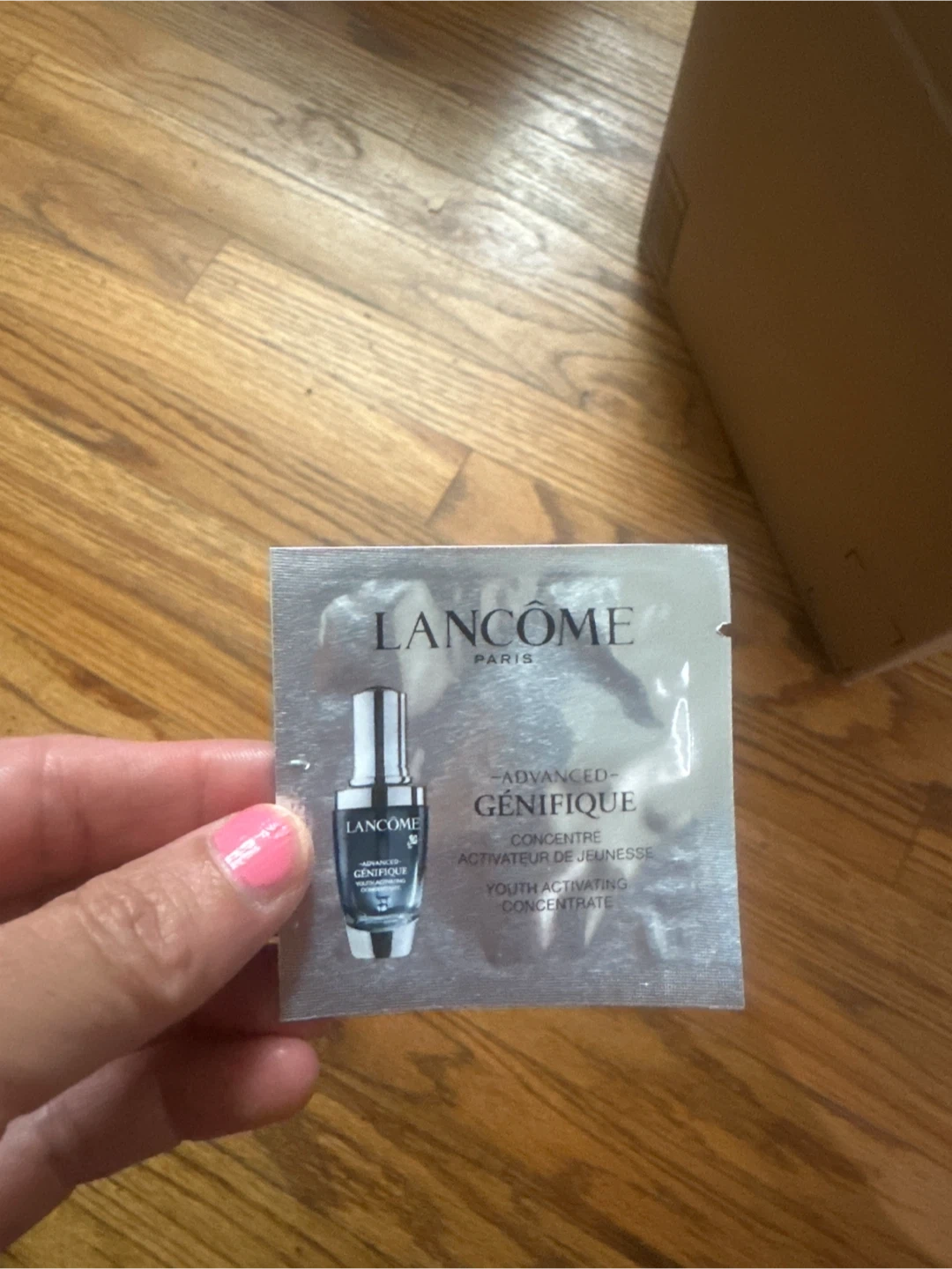 439Selling a set of skincare samples: a Lancome Absolue Crème Fondante Soft Cream sample, a Lancome Advanced Genifique Youth Activating Concentrate sample, and a Shiseido sunscreen sample