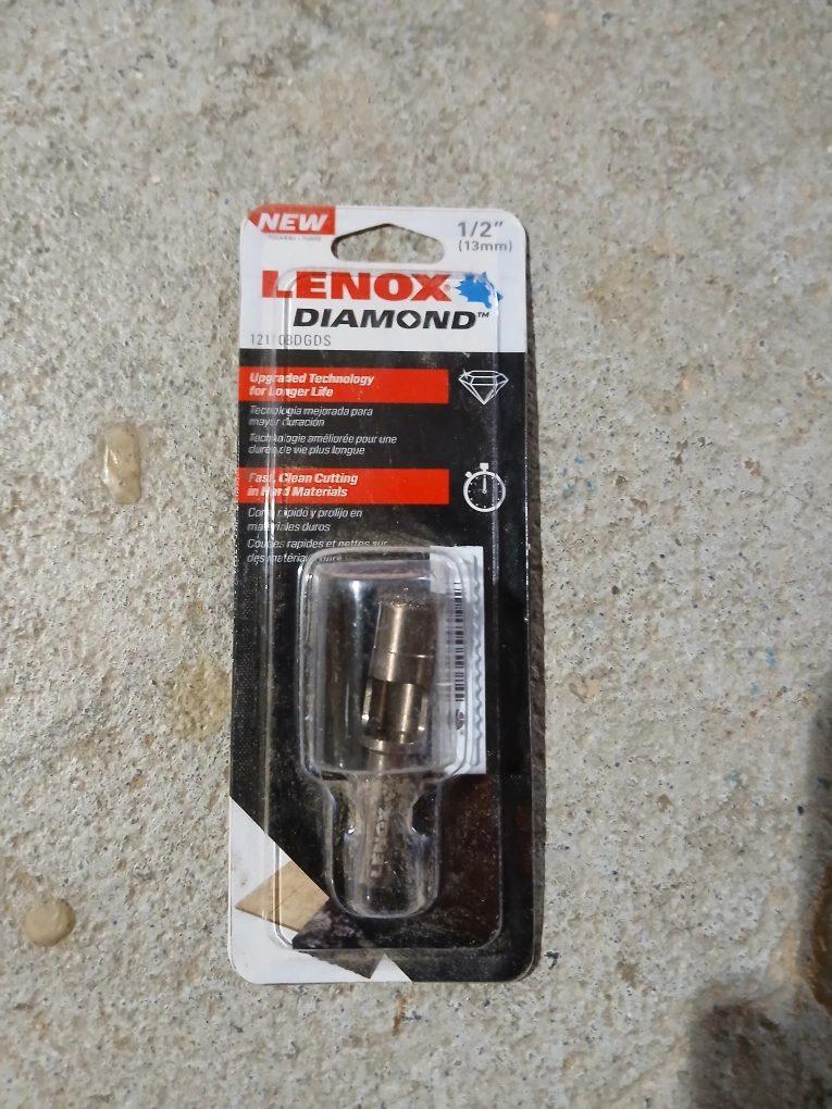 60Selling a brand new Lenox Diamond drill bit, size 1/2" (13mm) Great for drilling into granite, porcelain, ceramic, slate, and marble