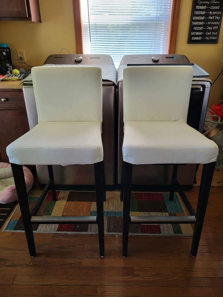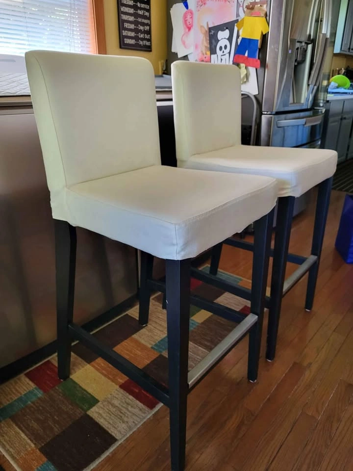 30" high bar stools Ikea brand (2 unit). Excellent condition. Clean covers , small detail on one , you can see the picture. You can find diferent covers on Ikea or Amazon.