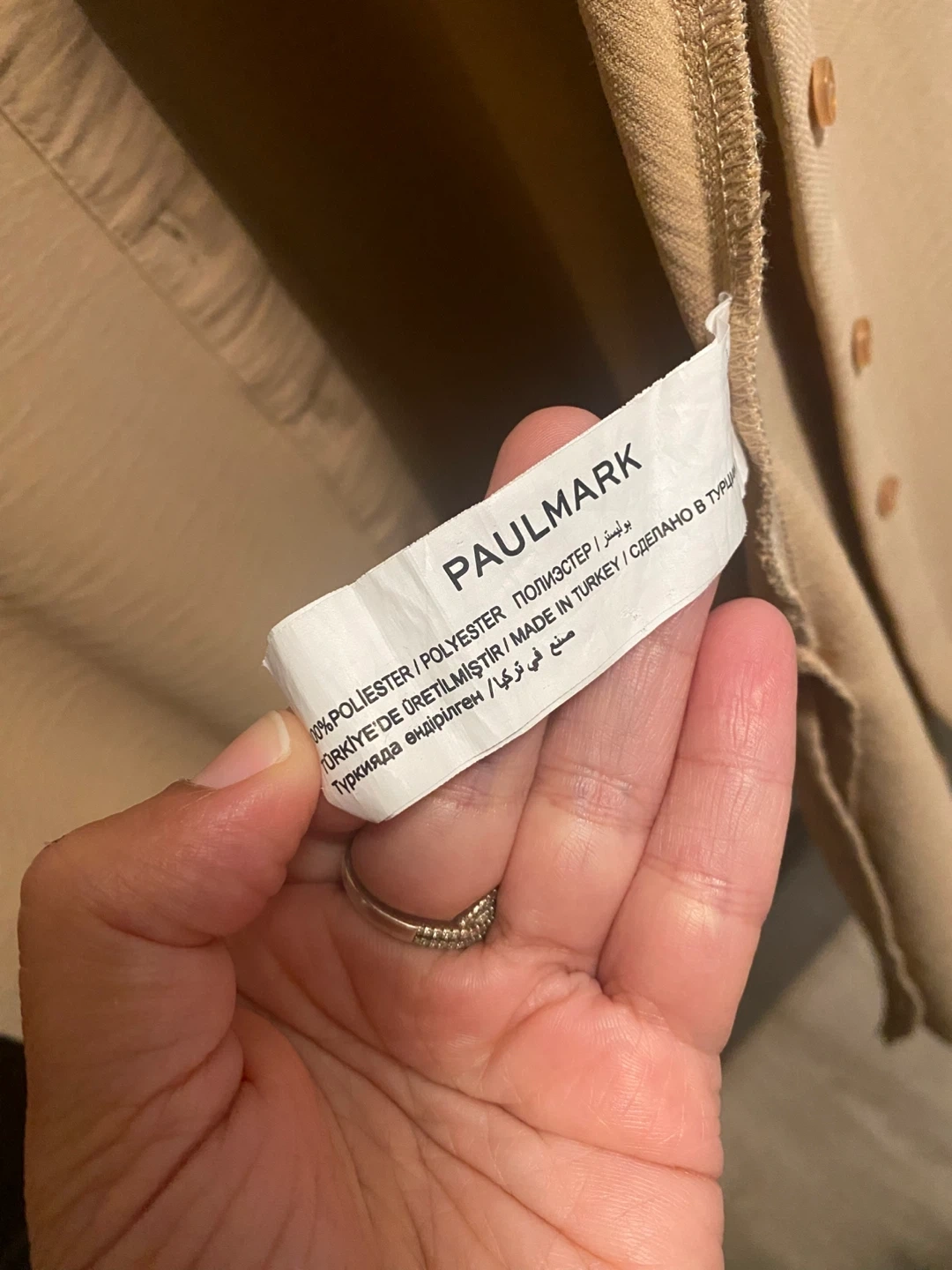 124Selling a lovely PAULMARK dress in a neutral beige colour! It's a size small and features a button-down front and long sleeves. Perfect for a casual or dressy occasion! Made in Tuekey Pet and smoke free home Cash only