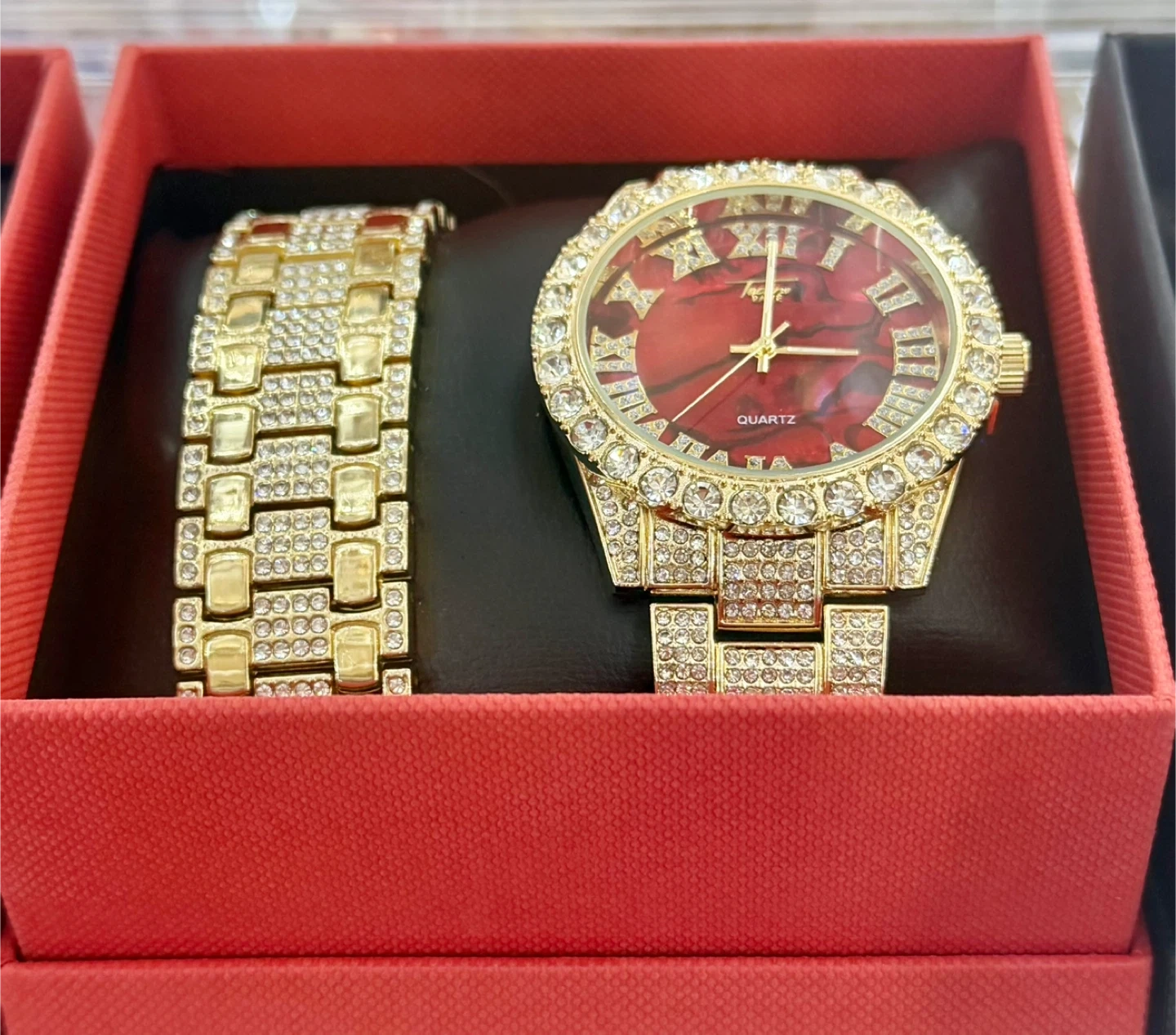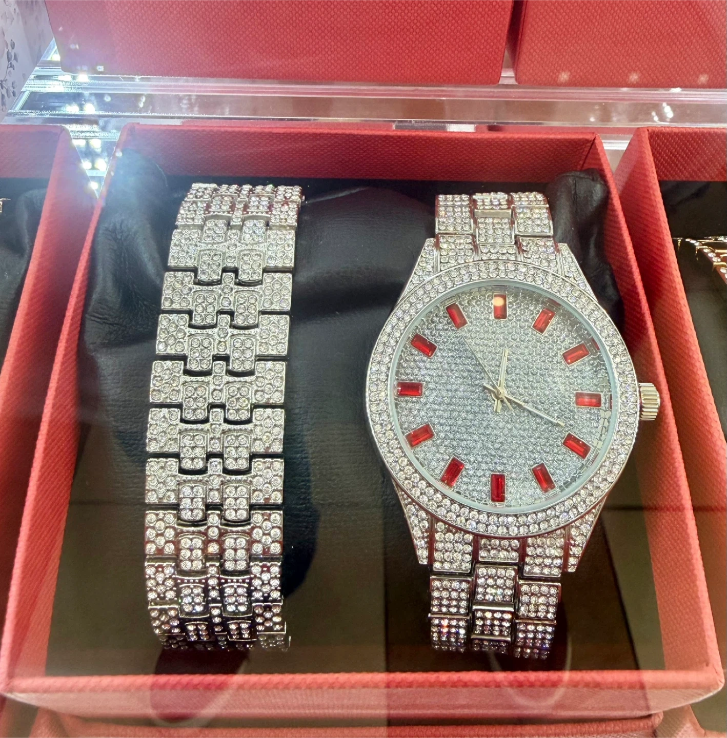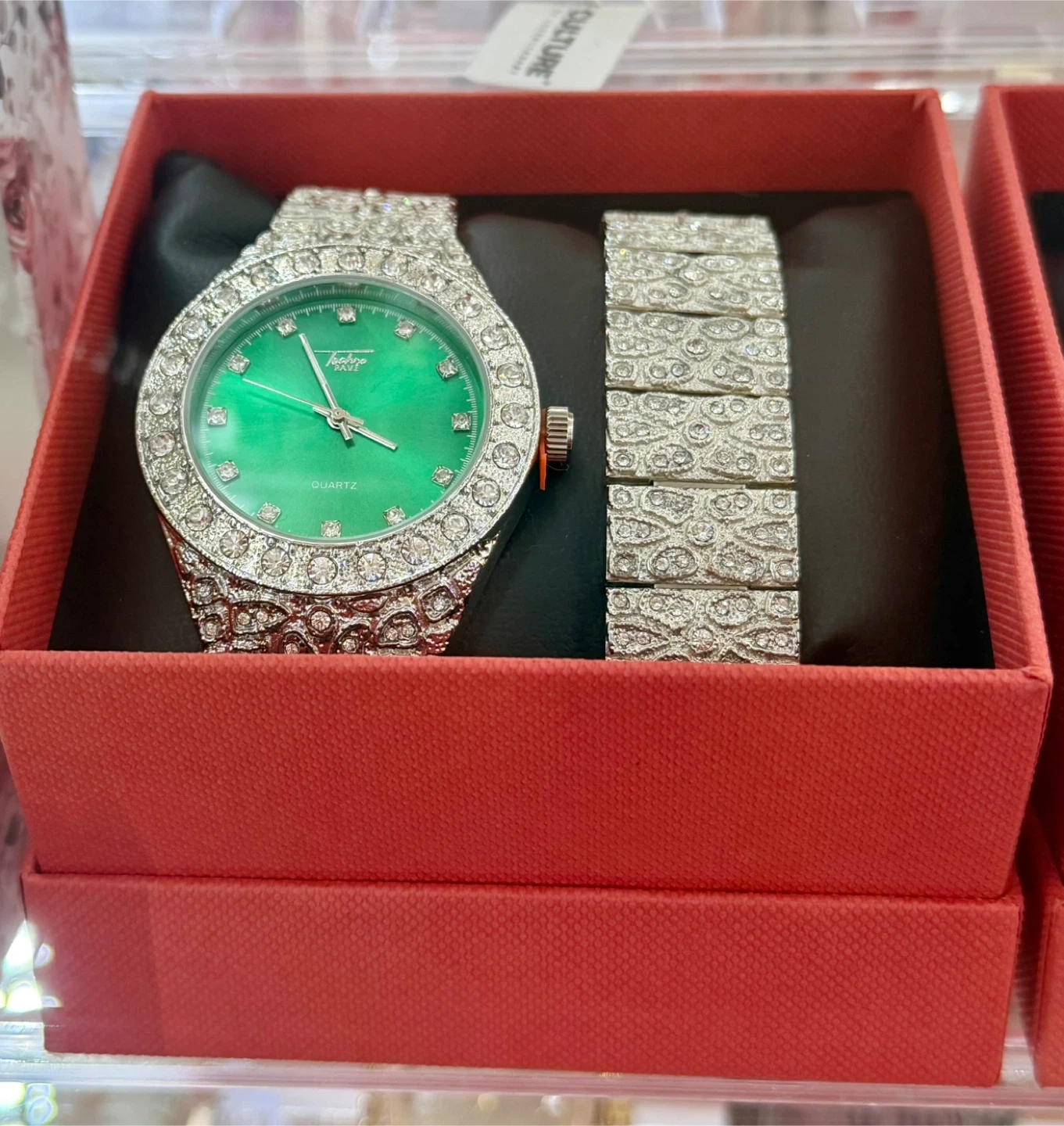 10Selling a Techno Pave watch and bracelet set! It comes in a box and would make a great gift. The watch is quartz and has a very unique look with all the stones