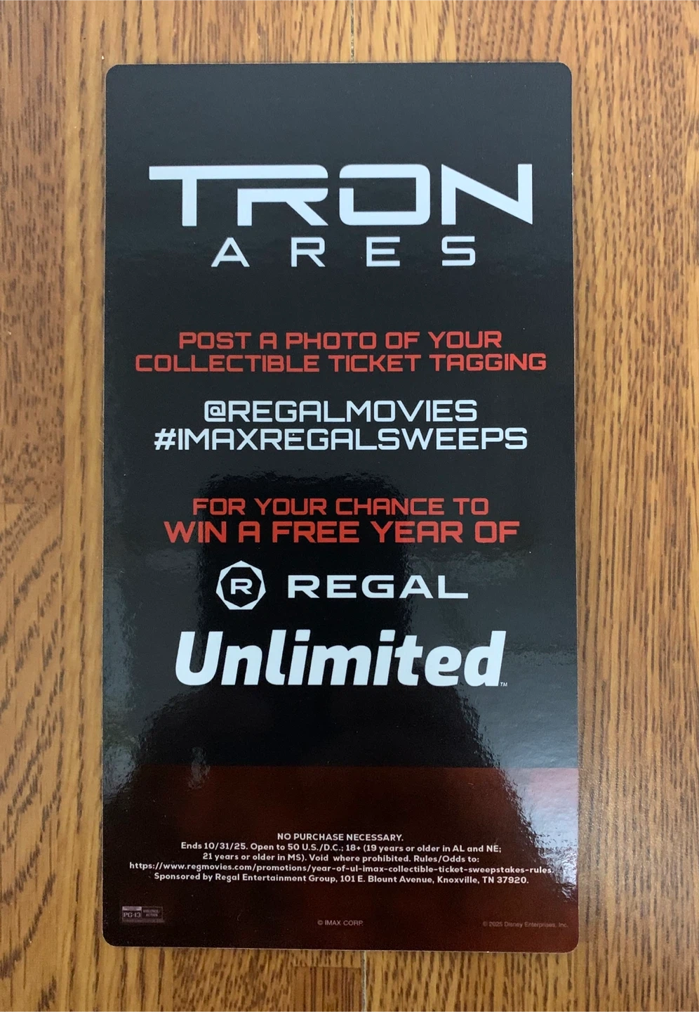 Tron: Ares (Regal Exclusive) IMAX Collectible Ticket