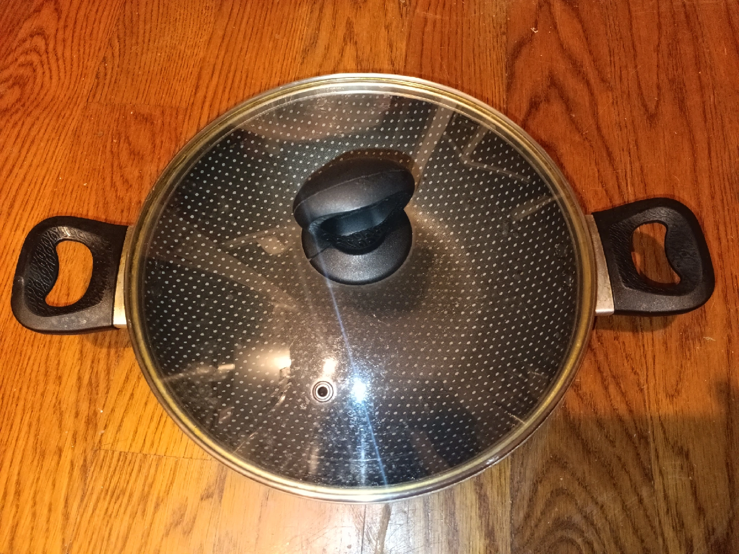 754Selling a pot with a glass lid. The pot has two handles and the lid has a black knob. It's in good condition!