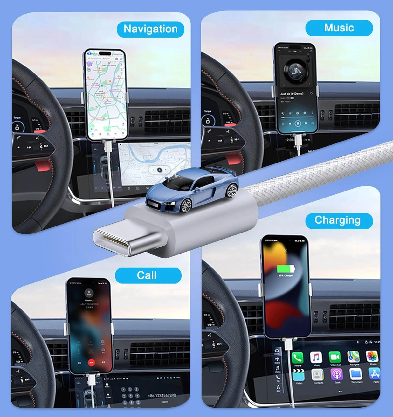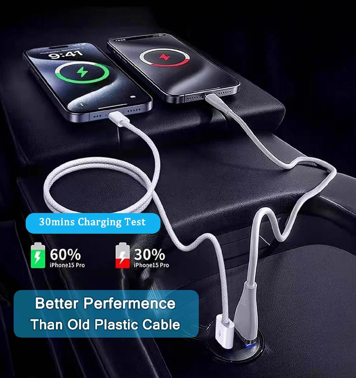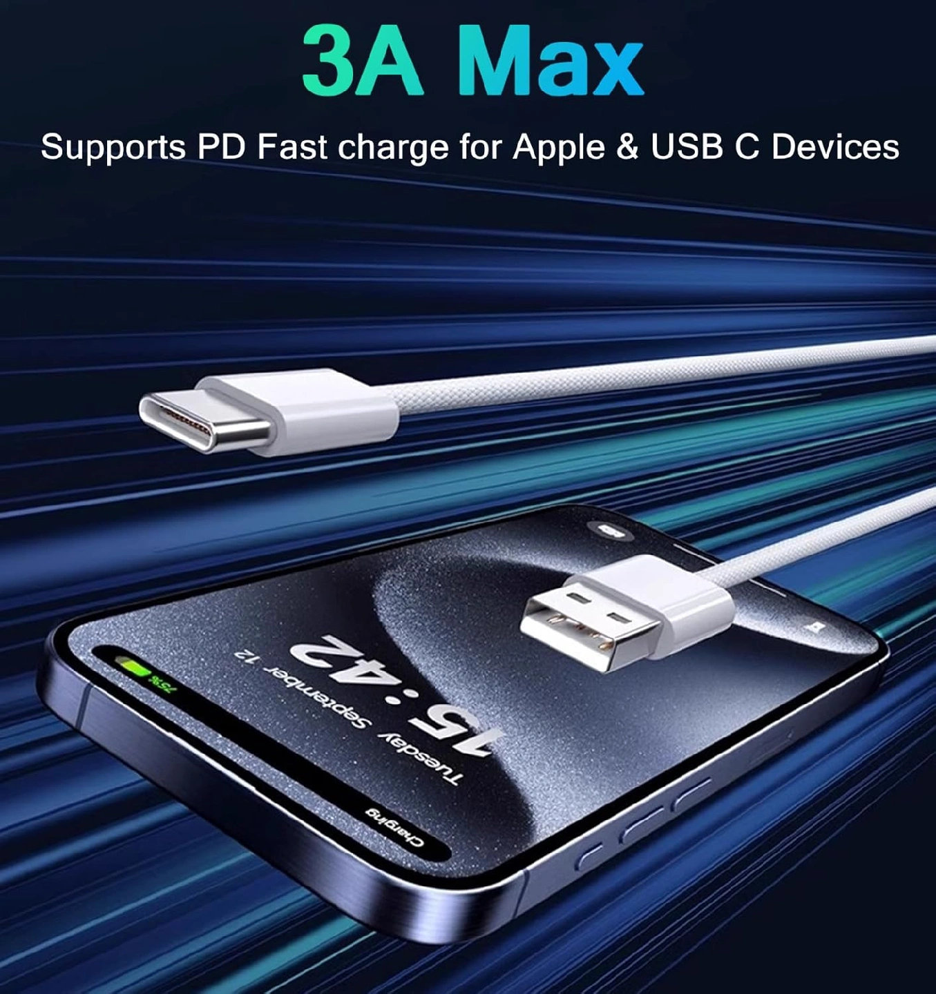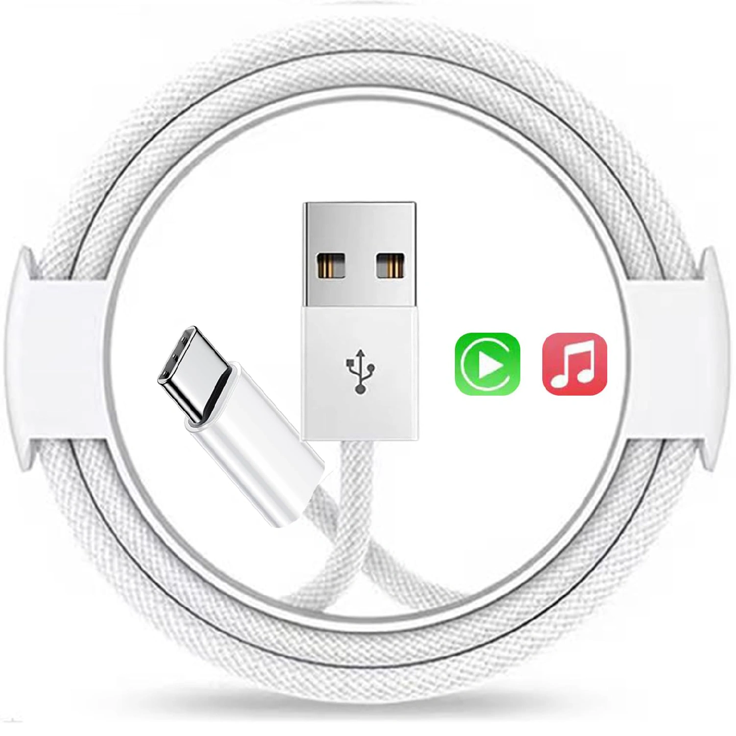ukiism USB to USB C Cable Car Charger Cord Compatible for iPhone 15/16 Pro Max Plus, iPad Pro Air Mini-White Braided