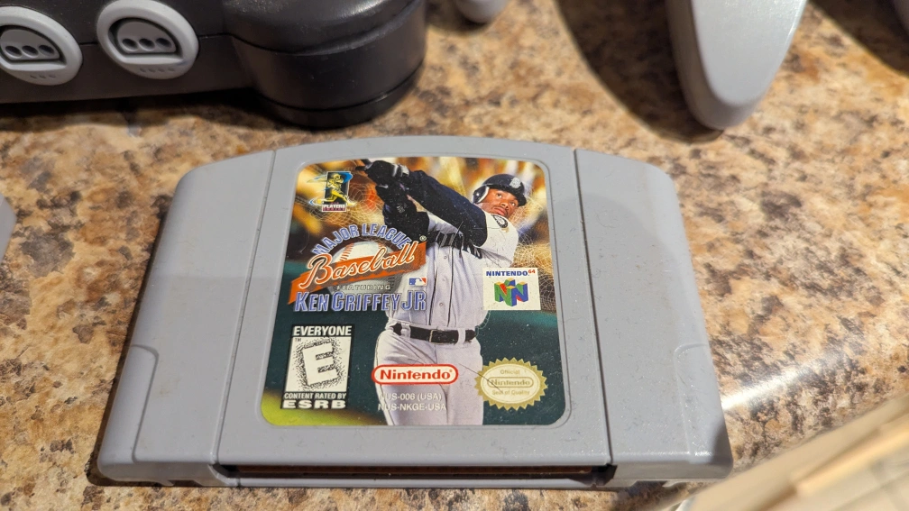 15Selling a Nintendo 64 console in good condition! Includes two controllers, the power adapter, av cable and three games: Super Mario 64, Star Wars Episode 1 Racer, and Ken Griffey Jr. Major League Baseball