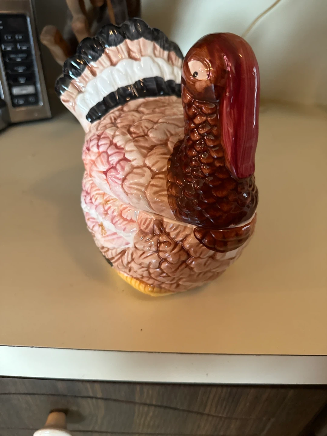 70This is a ceramic turkey jar. It's great for fall decor or Thanksgiving. It is in excellent condition