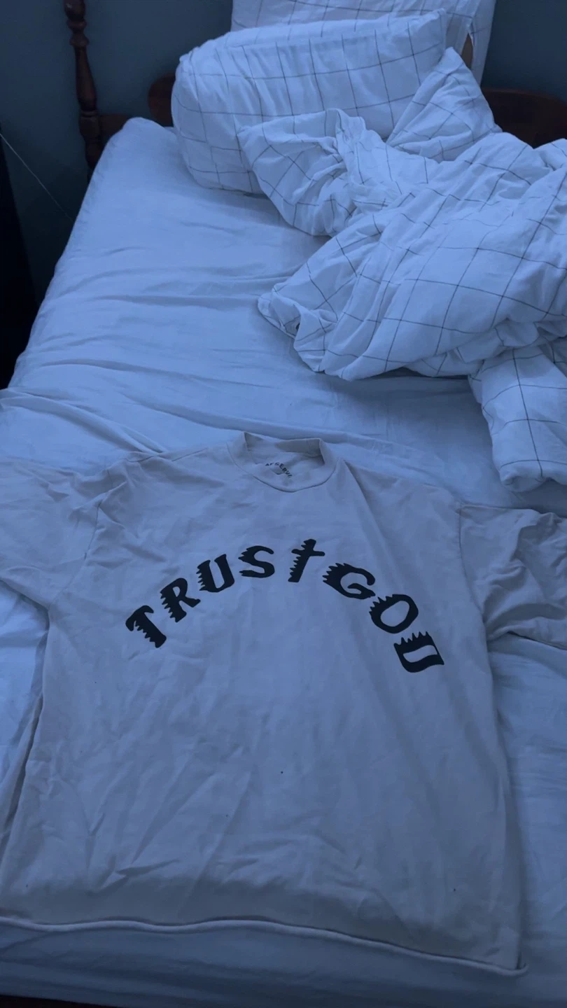Selling a Sunday Service T-shirt with 'Sunday Service at the Mountain' printed on the back and 'Trust God' on the front. It's in great condition barely worn size medium fits big