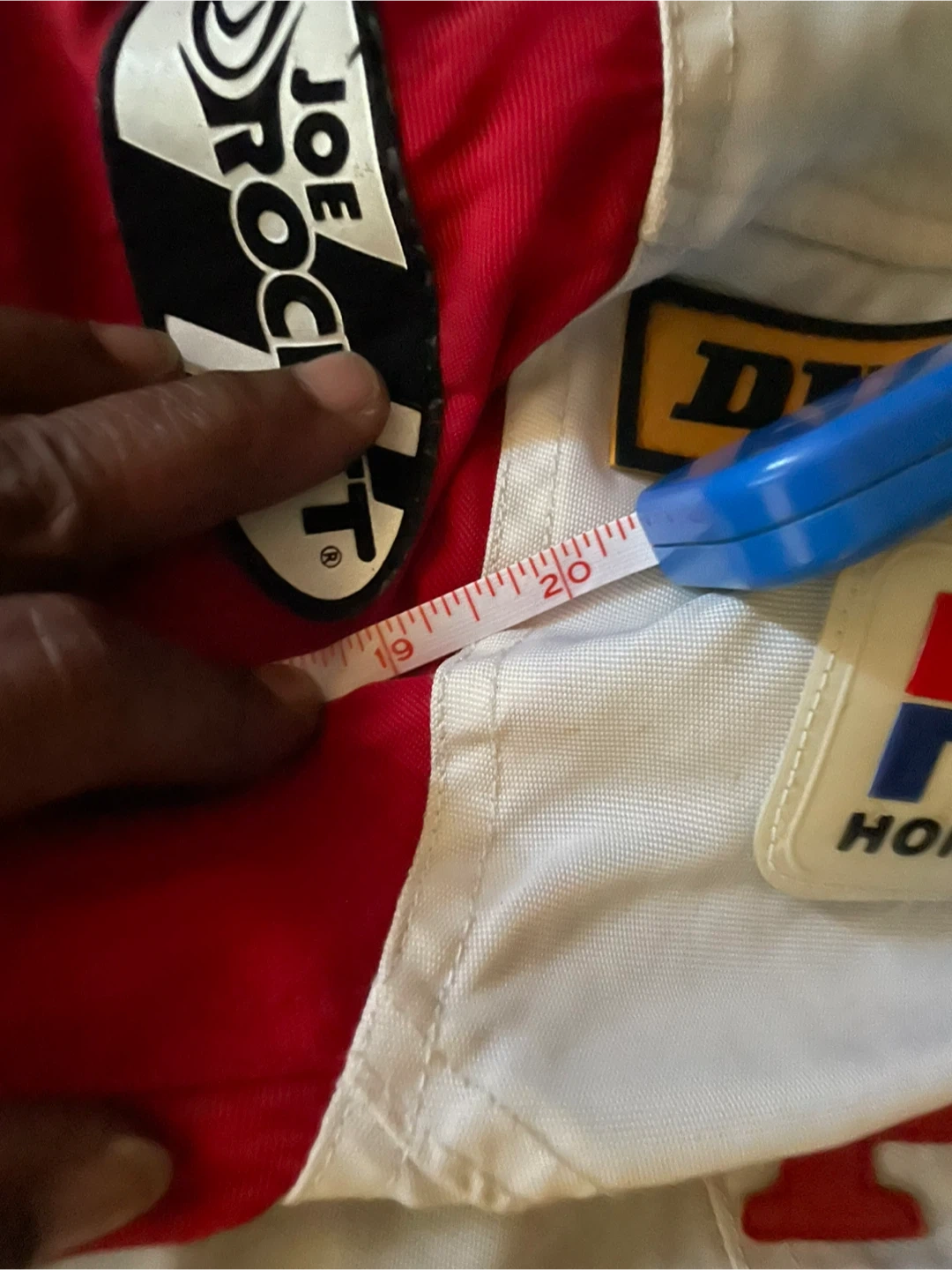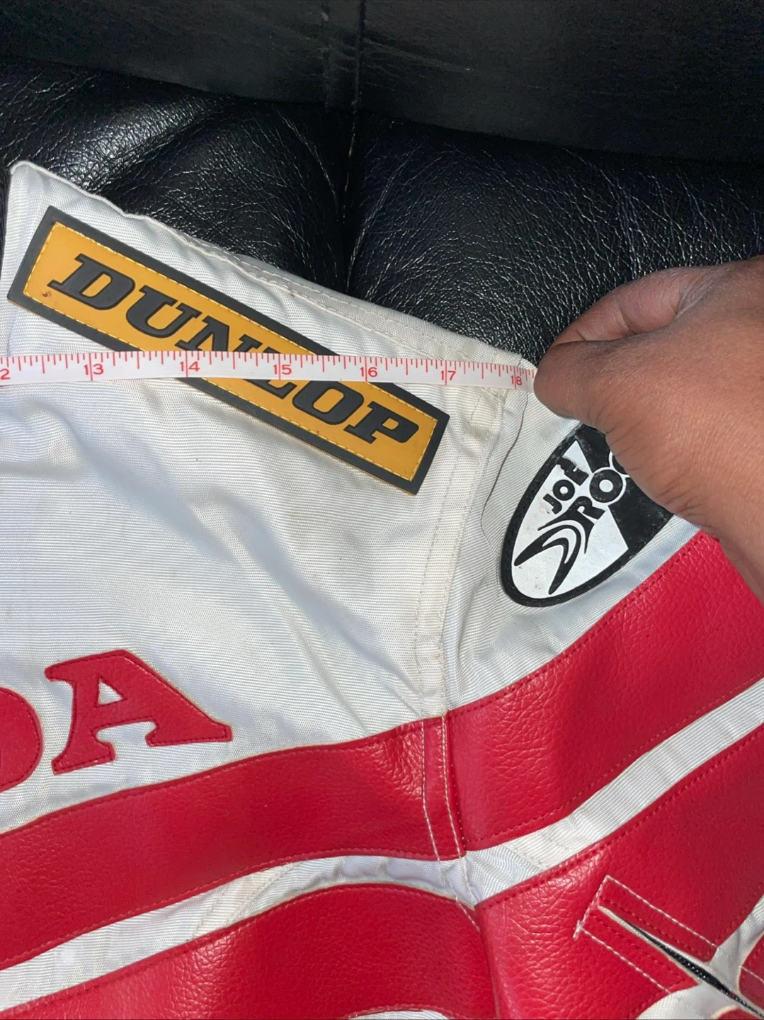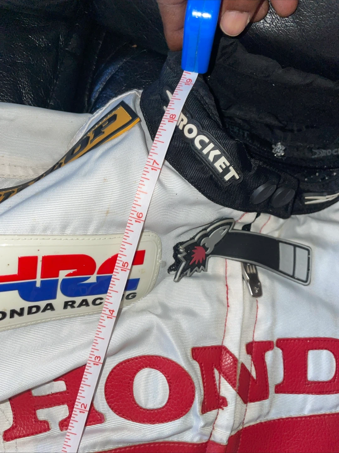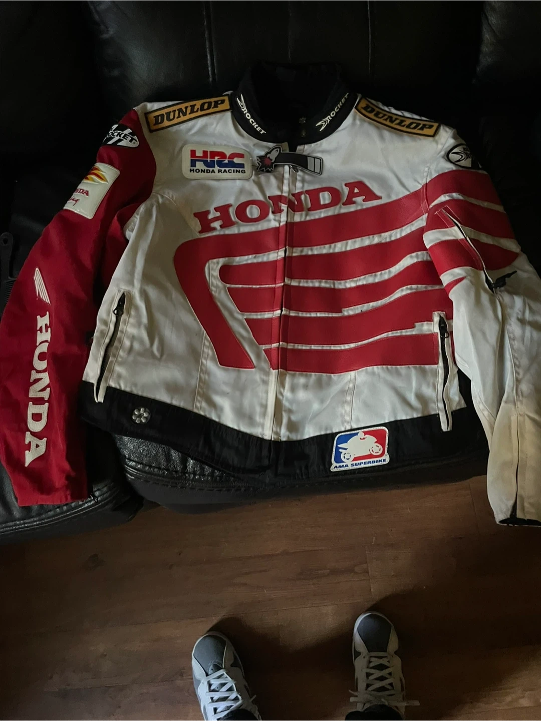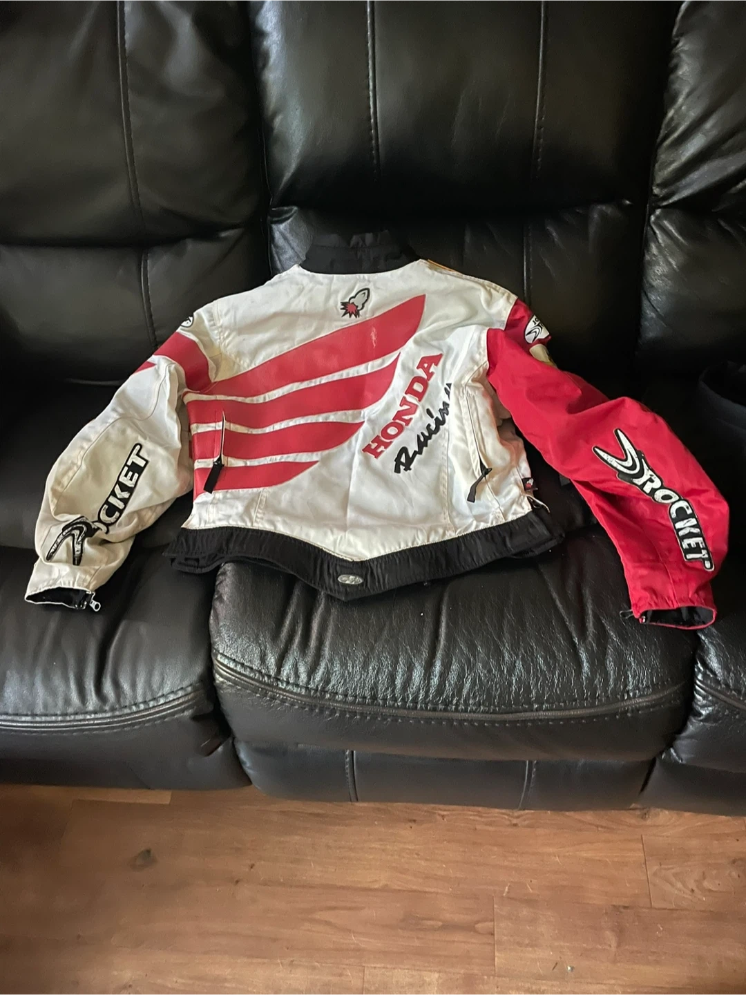 60Selling a Joe Rocket Honda Racing jacket. It has Dunlop and HRC Honda Racing logos. The jacket is red and white. Selling as in (without lining)