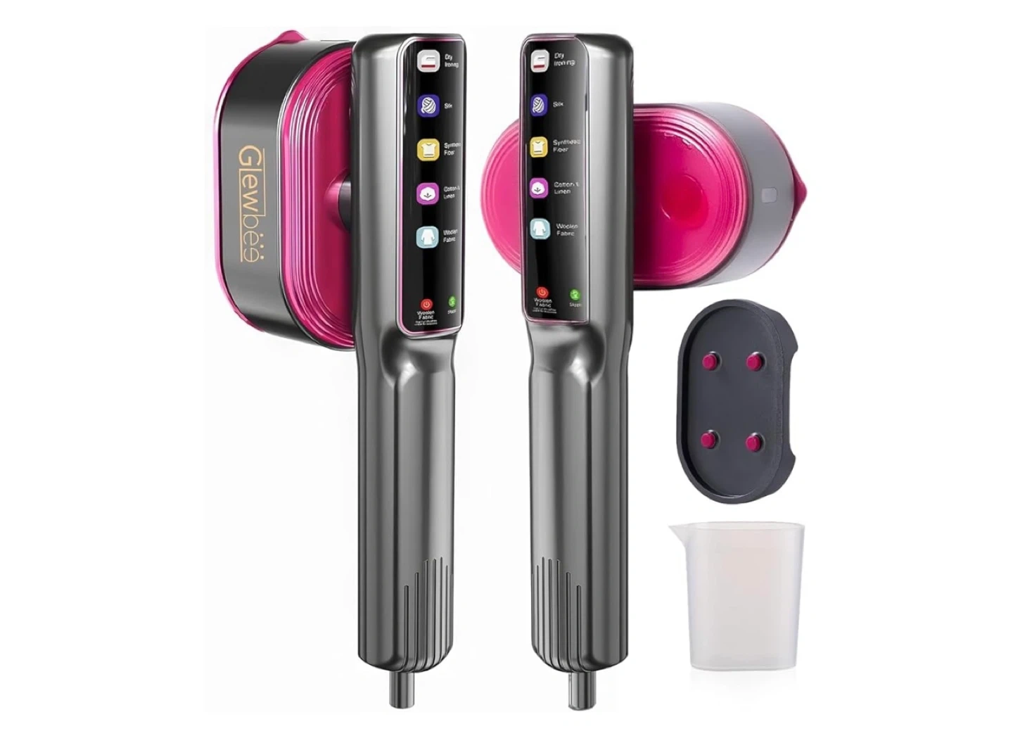 47I'm selling a new Glewbee portable iron! It's gray and pink and looks like it would be perfect for travel or small spaces. It comes with a small water cup and a base.