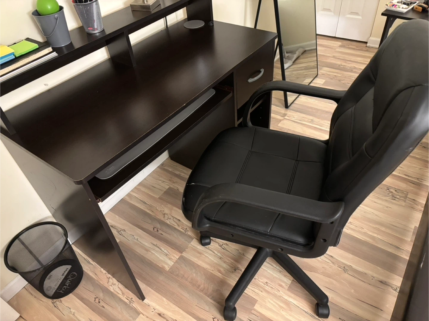 Dark Brown Computer Desk and desk chair
