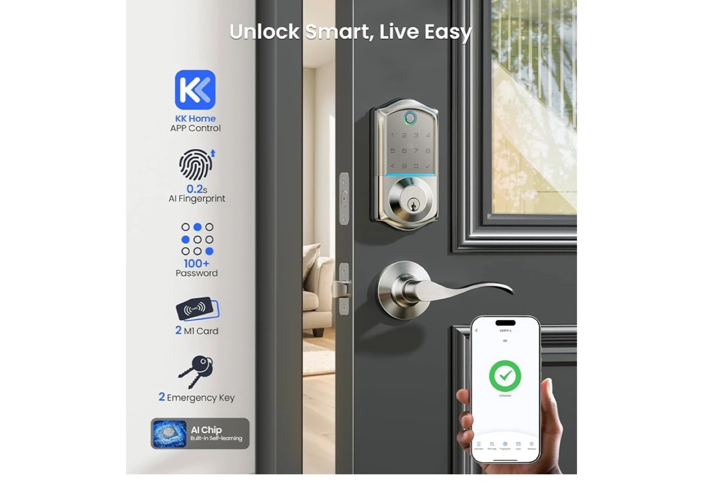 46Selling a KK Home smart door lock set! It comes with everything you need for easy and secure access to your home. Key features include: - KK Home App Control - AI Fingerprint recognition (0.2s response time) - Supports 100+ Passwords - Includes 2 MI Cards and 2 Emergency Keys - AI Chip with built-in self-learning