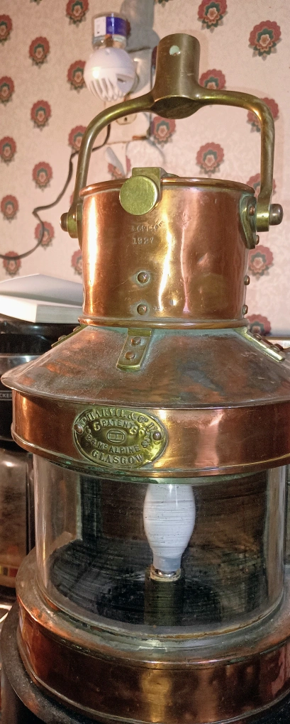 Selling a vintage Harvie & Co. marine lamp! It features a beautiful copper finish and a glass enclosure. The lamp has a distinctive design and would be a great decorative piece for any nautical enthusiast or collector