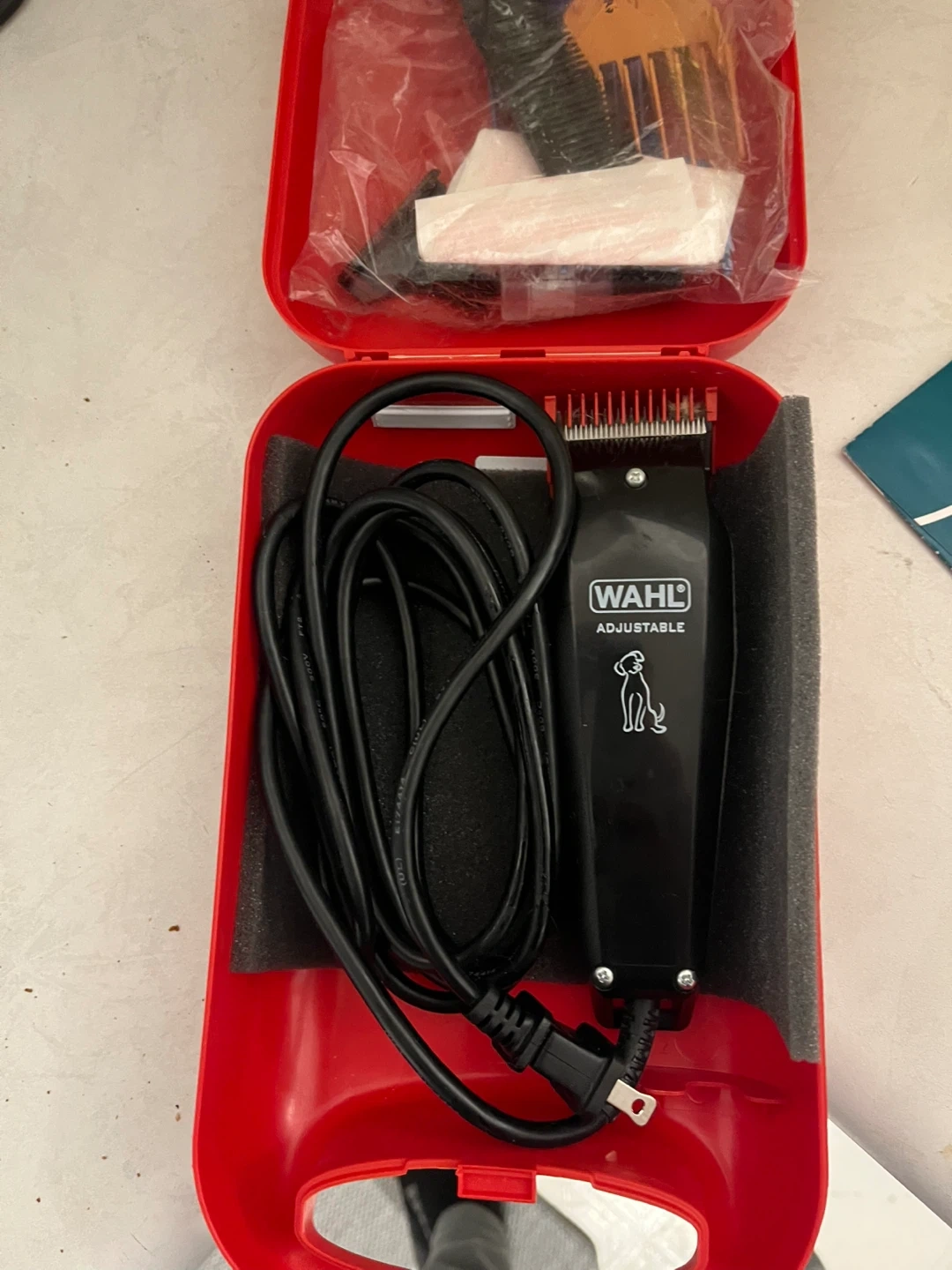 Selling a Wahl adjustable animal grooming kit. It includes the clipper, a variety of comb attachments, and a comb. The kit also comes with its original red carrying case and the operating instructions