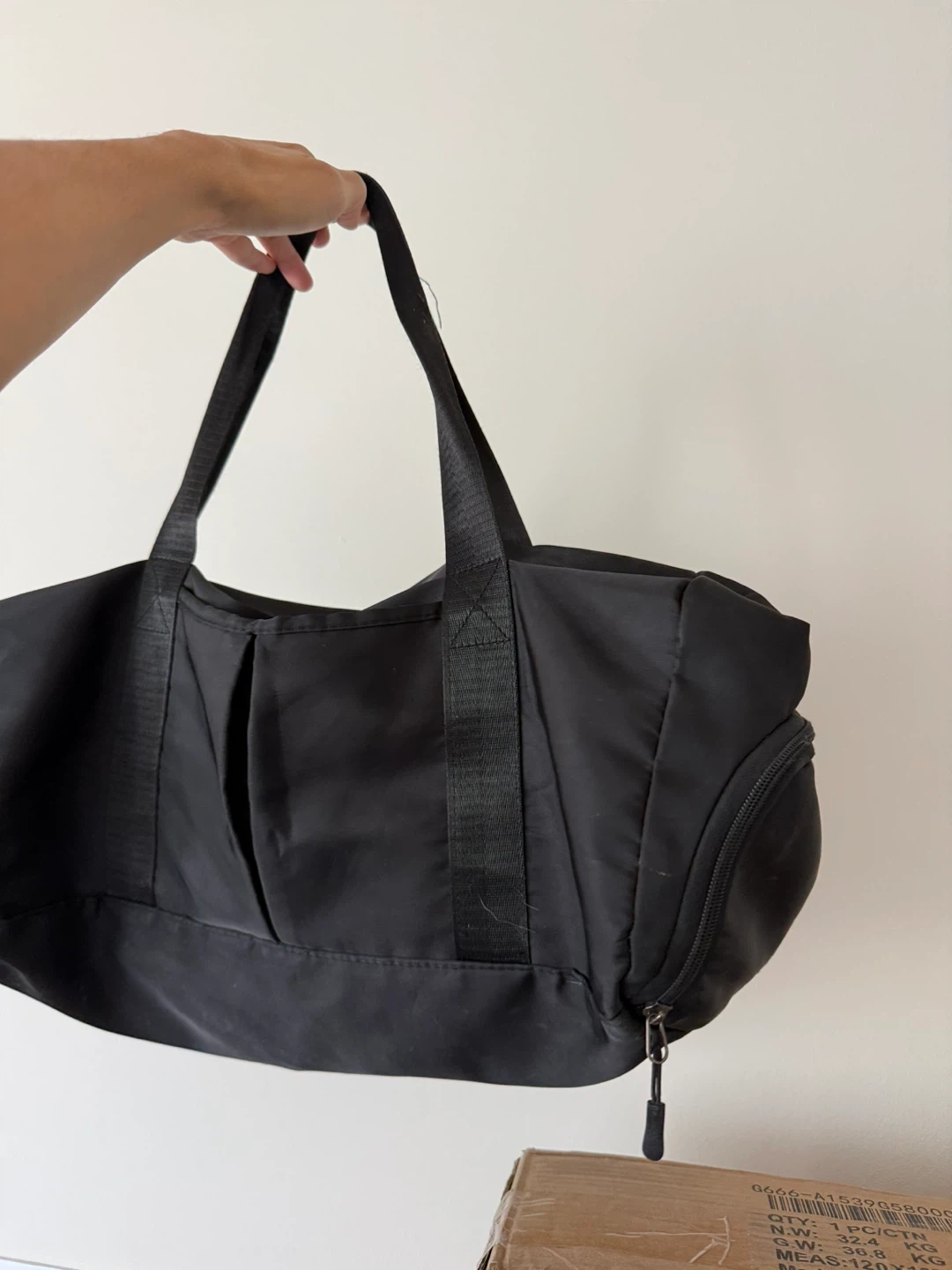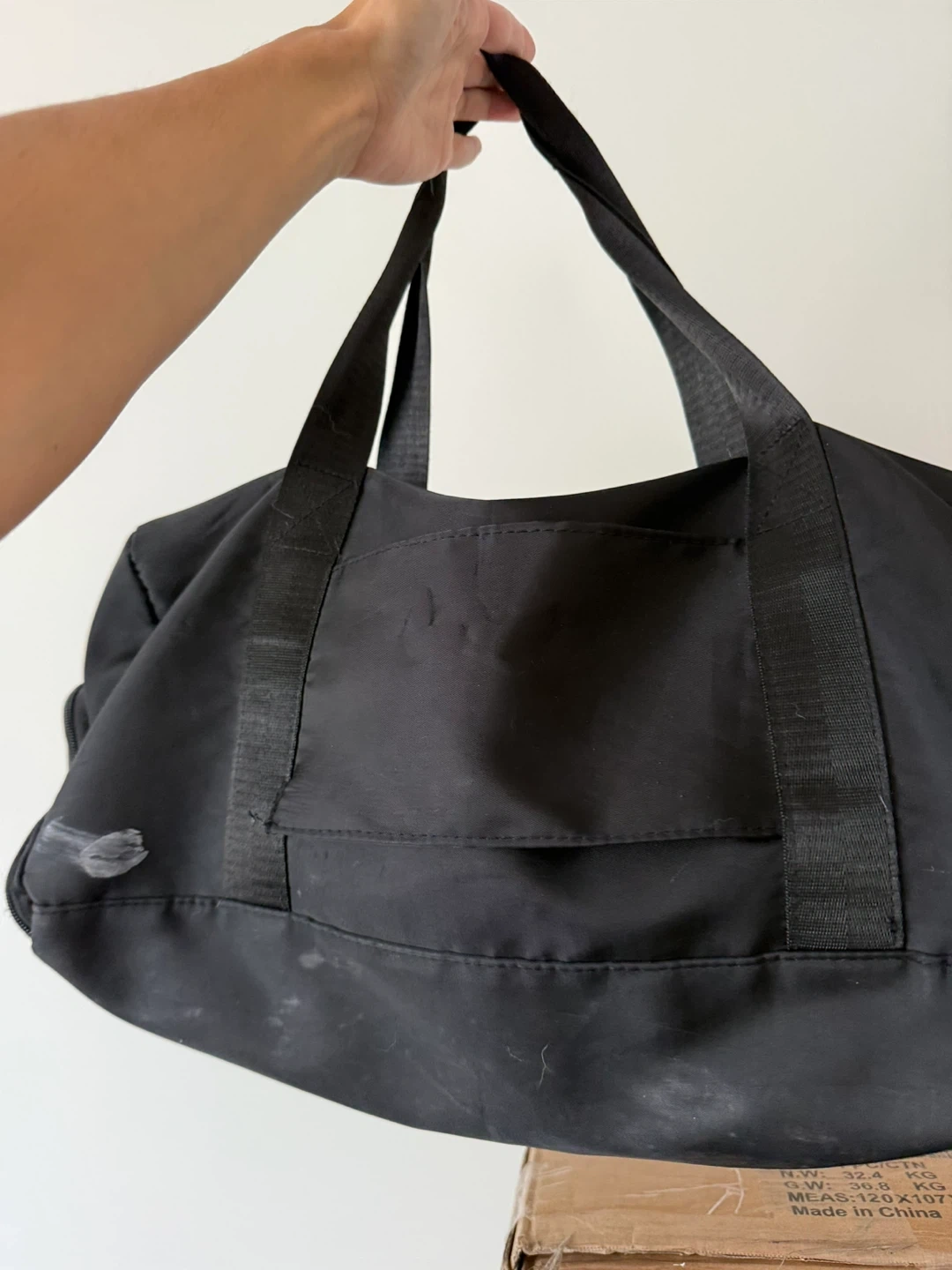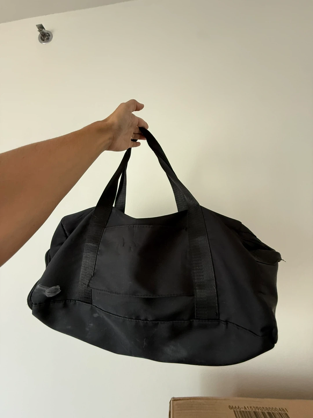 21Selling a black duffle bag. It's a great bag for the gym or travel. It is in used condition with some wear and tear as shown in the pictures