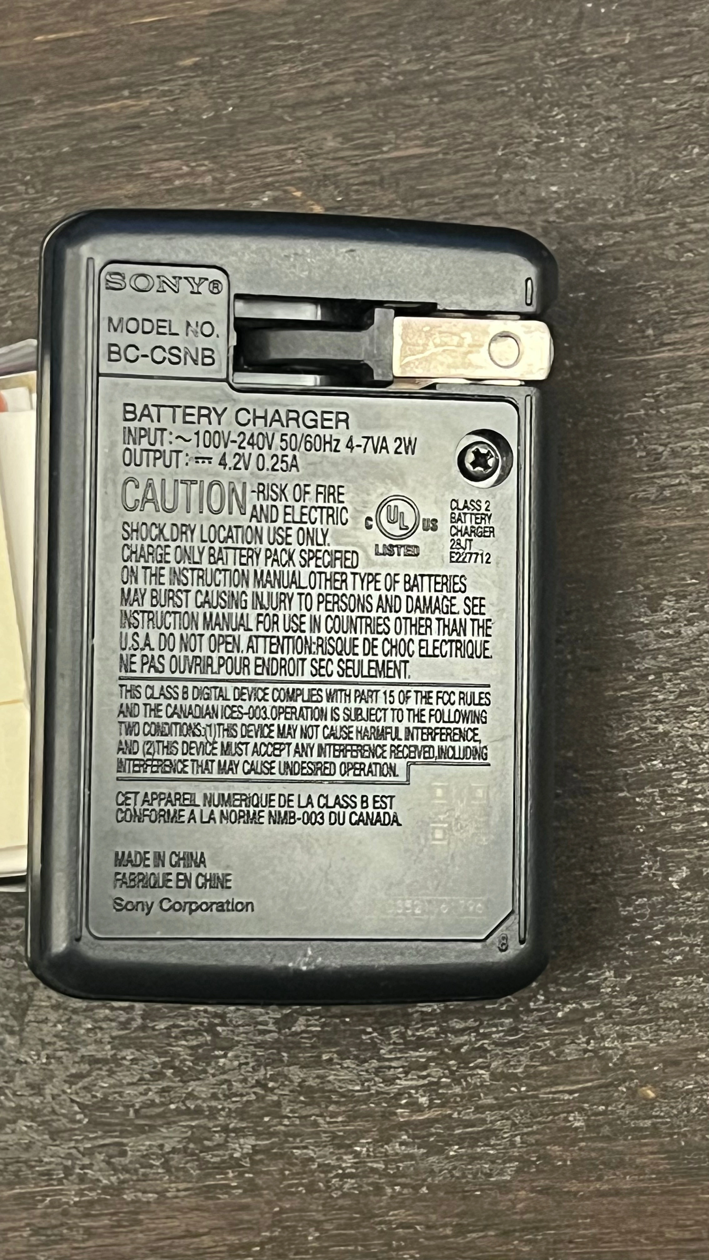 83Pick up @ upper east side 93rd and 2nd building lobby Model: Sony BC-CSNB Compatible Batteries: NP-BN1, NP-BN Condition: Gently used, fully functional Includes: Charger only (battery not included)