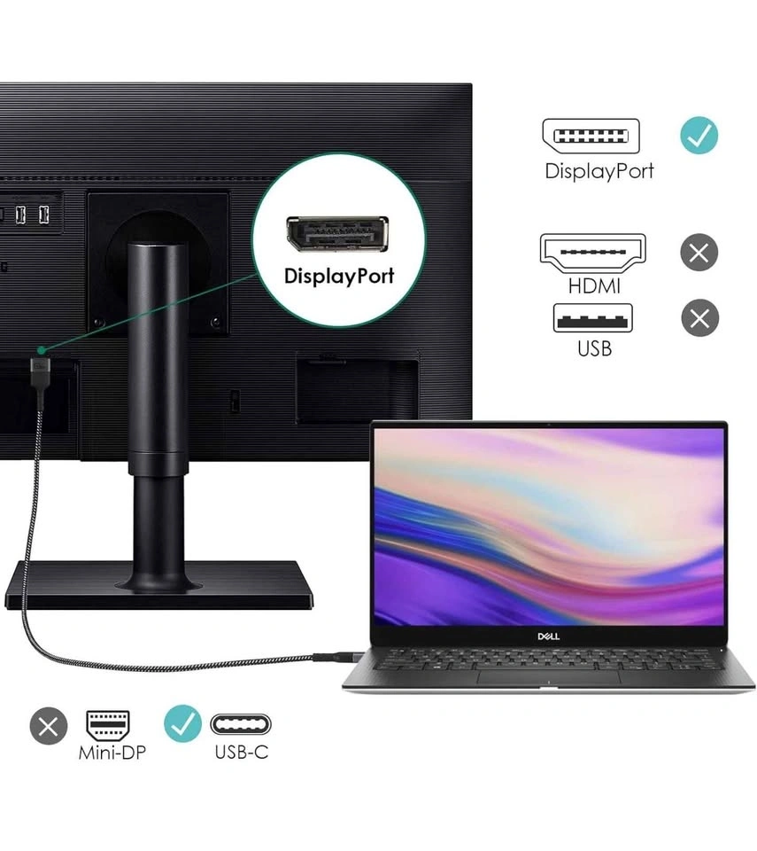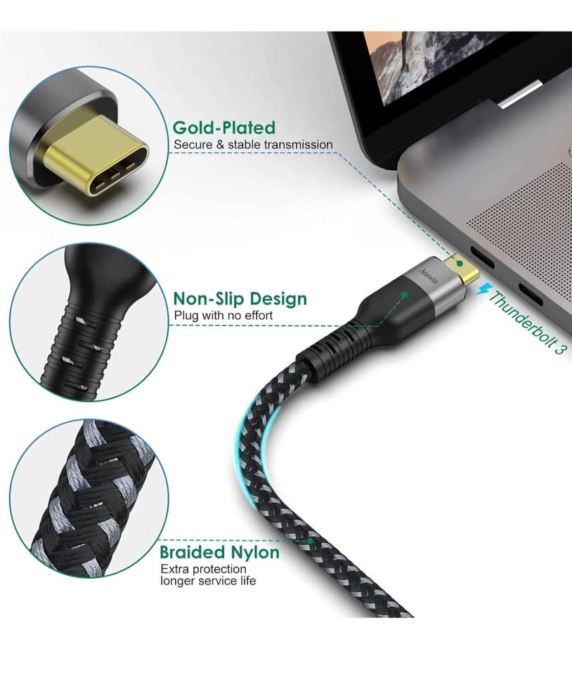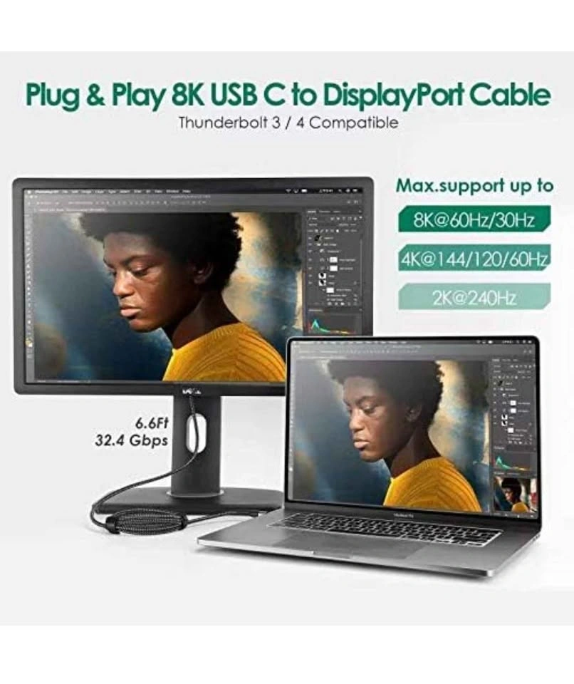 22USB C to DisplayPort 1.4, 6.5Ft 8K@60Hz(4K@144Hz/120Hz, 2K@240Hz) Thunderbolt 3 to DisplayPort Cable 32.4Gbps for iPhone 16/15, M1/M3 MacBook Pro, MacBook Air/iPad Pro, XPS 15 and More