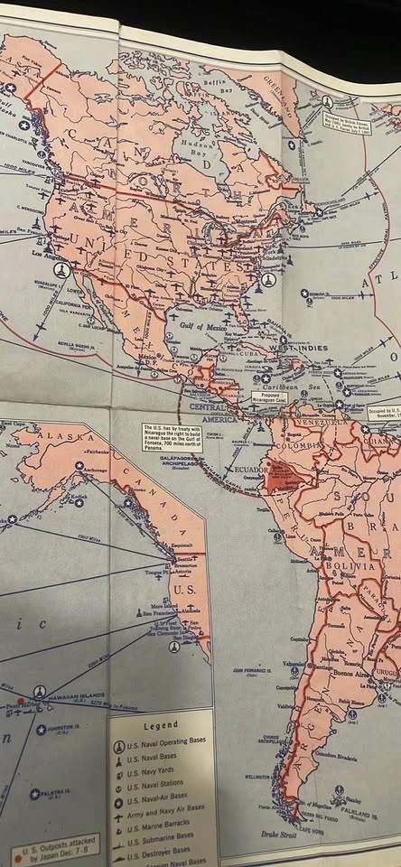 70Very interesting map from early in World War II. I cannot find a date on it, but based on what I know about the war, I believe it was from right around when the United States got into it. It would look amazing in a frame, I just don’t have space on my wall to do that.