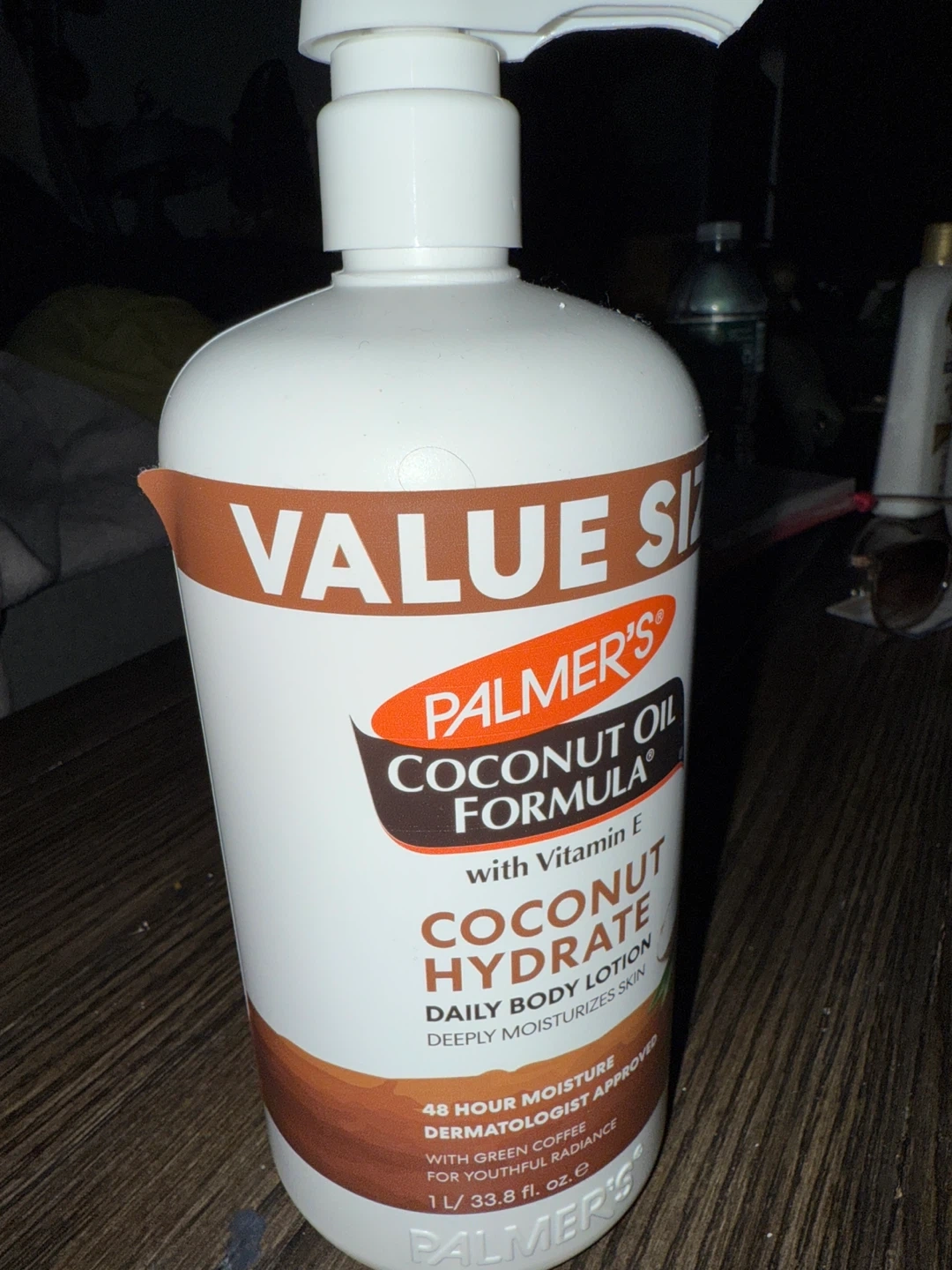 Palmer's Coconut Oil Formula daily body lotion deeply moisturizes skin. It's crafted with antioxidant-rich Extra Virgin Coconut Oil and Green Coffee Extract for radiant, healthy-looking skin. It contains Vitamin E and is dermatologist approved, paraben, phthalate & dye free. 1L/33.8 Fl Oz. Smoke free home.