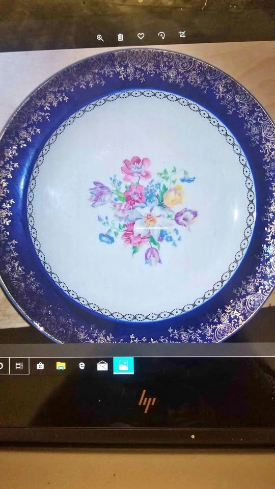 15Beautiful Blue plate with 22kt gold trim with flowers. Excellent condition.