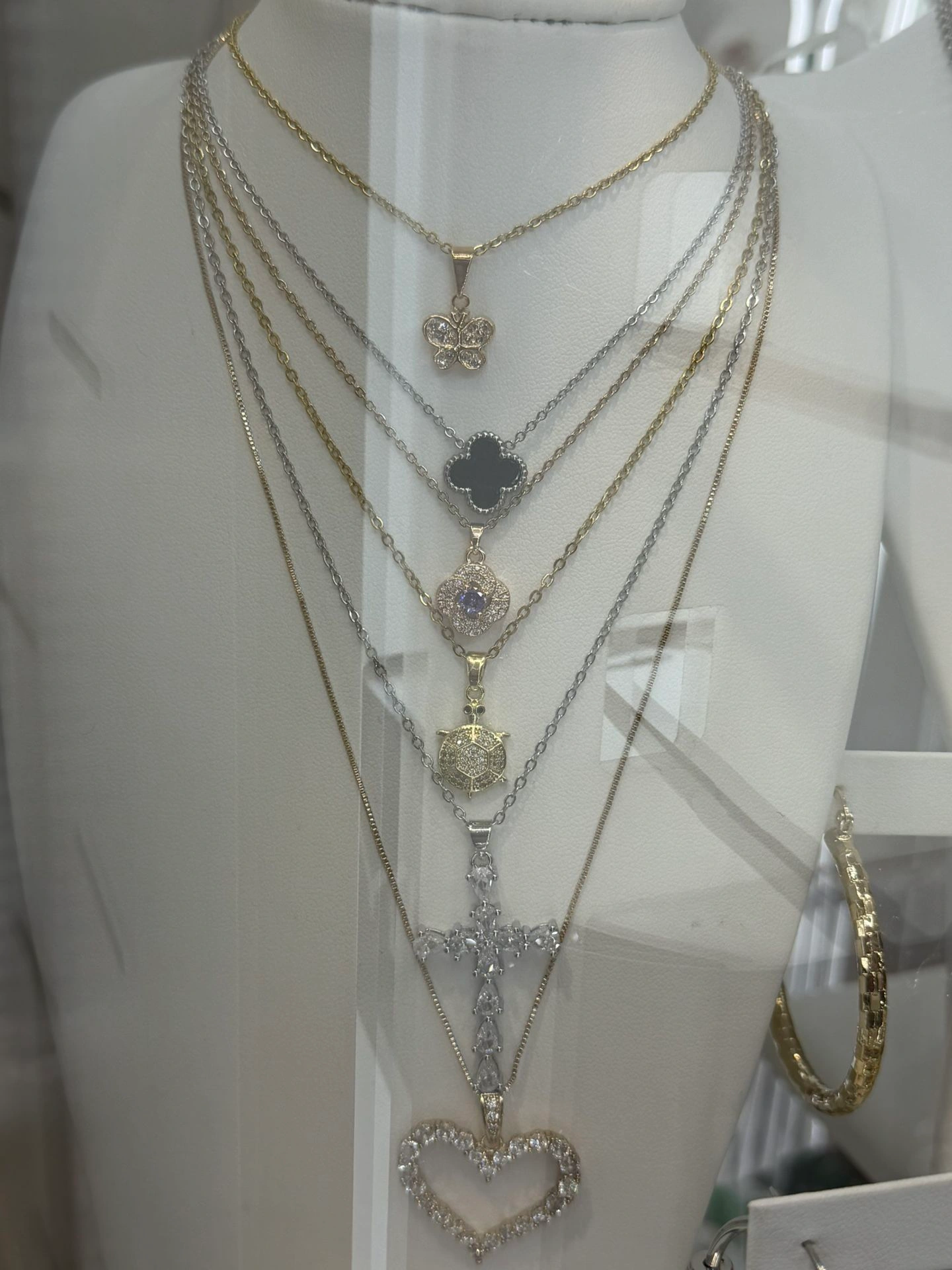 10Brand new. Add a touch of elegance to any outfit with this stunning multi-layered pendant necklace set, featuring both gold and silver tones for versatile styling. Adorned with dazzling charms, it's perfect for day-to-night wear.