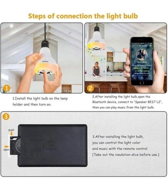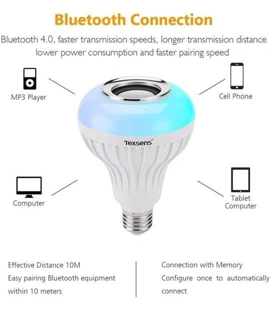 76LED Light Bulb Bluetooth Speaker, 6W E26 RGB Changing Lamp Wireless Stereo Audio with 24 Keys like new no retail box