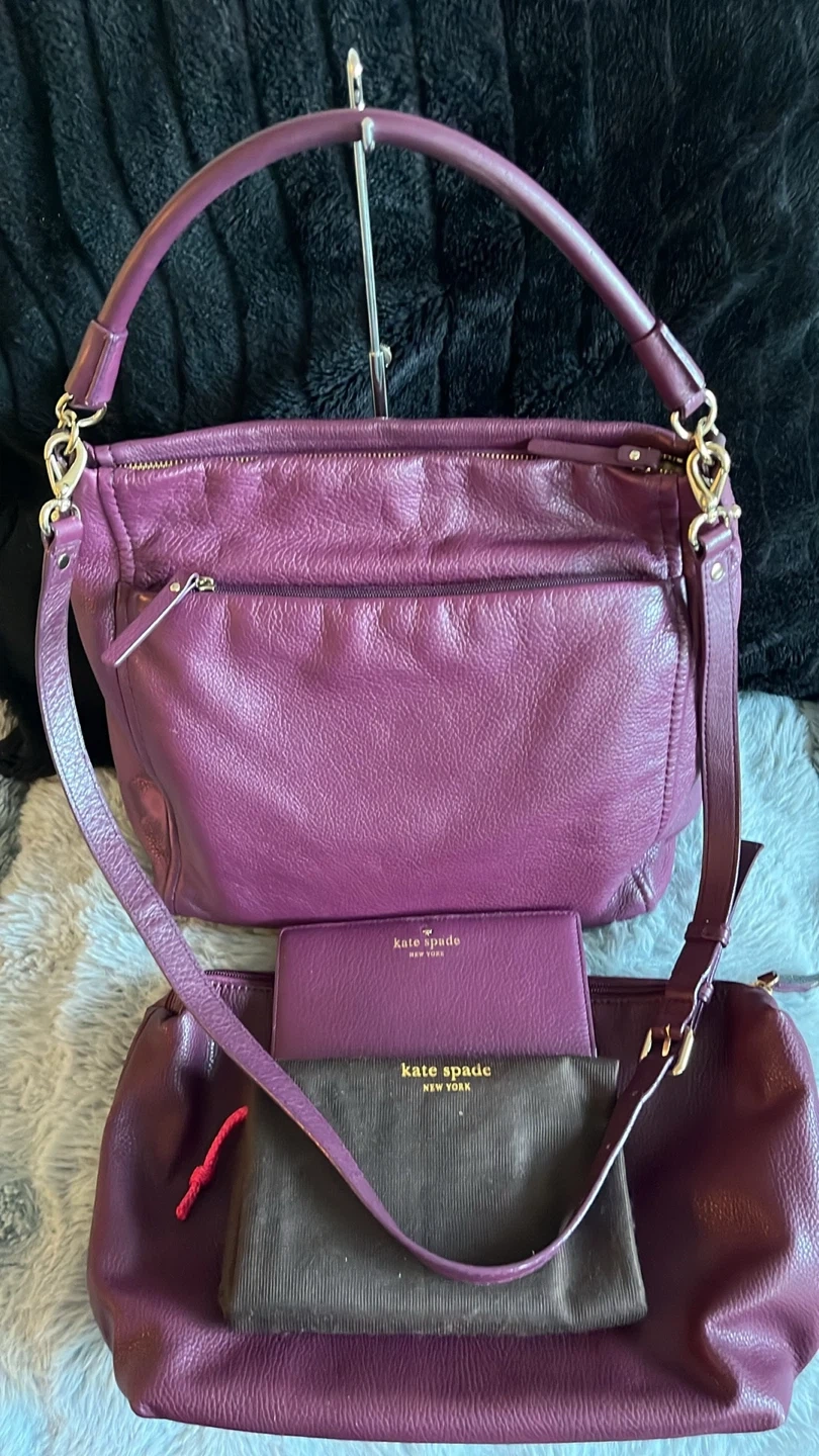 Selling a beautiful Kate Spade handbag in a lovely shade of purple! It comes with a matching wallet and dust bag. The handbag is in great condition and has plenty of room for all your essentials. Originally bought for $348!