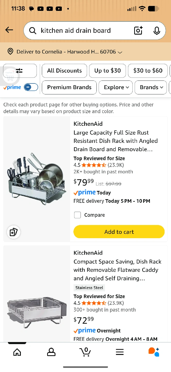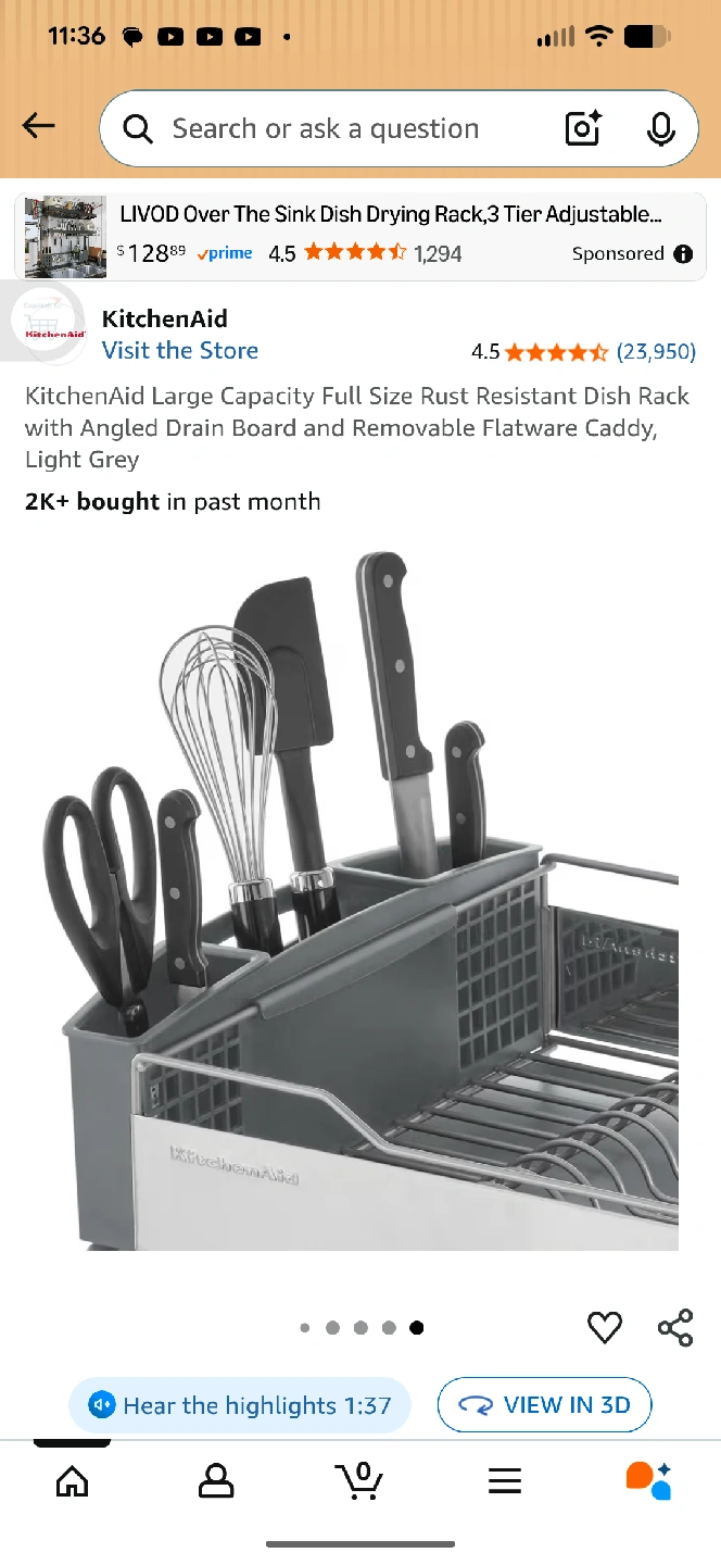 I'm selling a KitchenAid large capacity, full-size rust-resistant dish rack. It has an angled drain board and a removable flatware caddy. It's in great condition and ready to help keep your kitchen organized!
