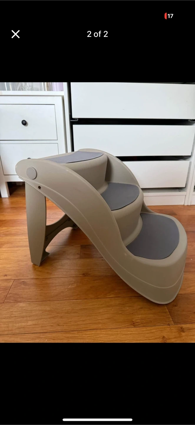 Selling a set of PetSafe CozyUp Folding Pet Steps! These steps are great for helping your furry friend reach their favorite spots, like the couch or bed. The steps are in good condition and fold easily for storage. They're beige in color and sturdy enough to support pets of various sizes. Literally brand new, my senior dog refused to ever use it!