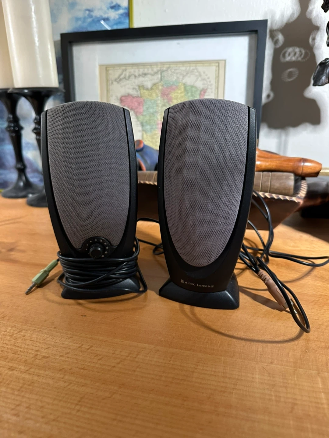 123Selling a pair of Altec Lansing computer speakers. They are black and gray and in good condition. Perfect for your computer or laptop setup!