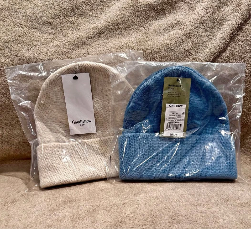 15Target brand, Goodfellow Beanies in Blue and Beige! Brand new with tags in bundle prices! 1 for $5; 2 for $8; 3 for $10 and 6 or more $2.50 each