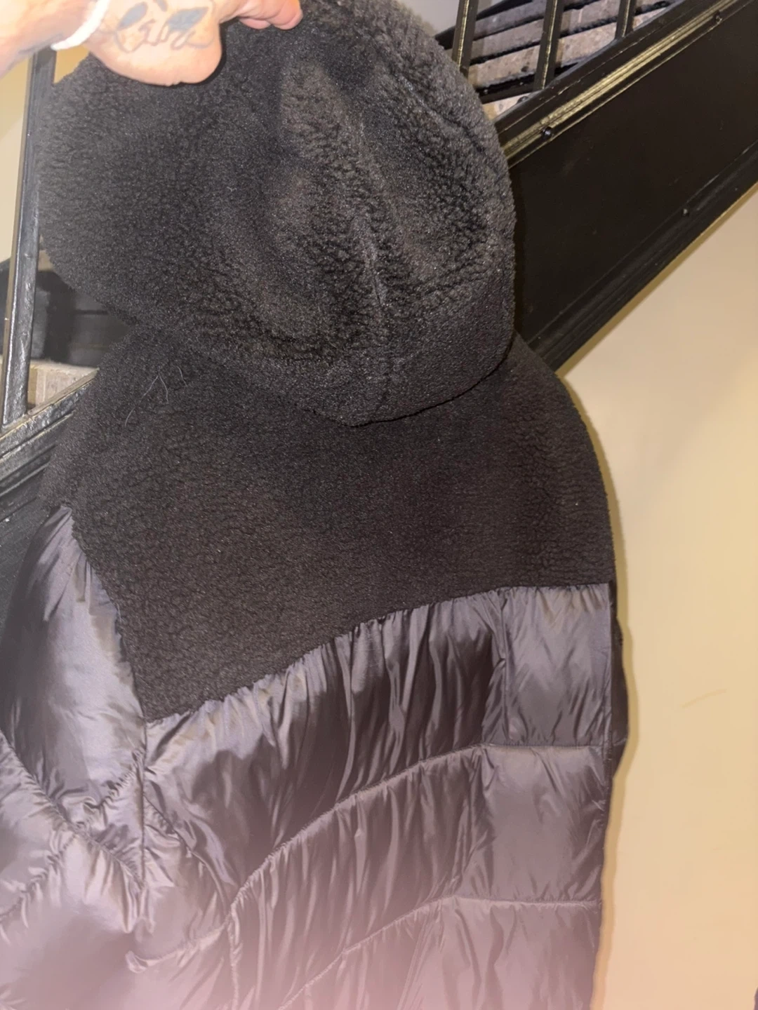 95Koolaburra by UGG women's puffer jacket. It is often described as a "mixed-media" jacket because of the combination of the puffer material and a sherpa or faux fur hood and yoke. This style features a zip front closure and pockets. The jacket is considered a midweight, insulated jacket suitable for everyday winter wear.