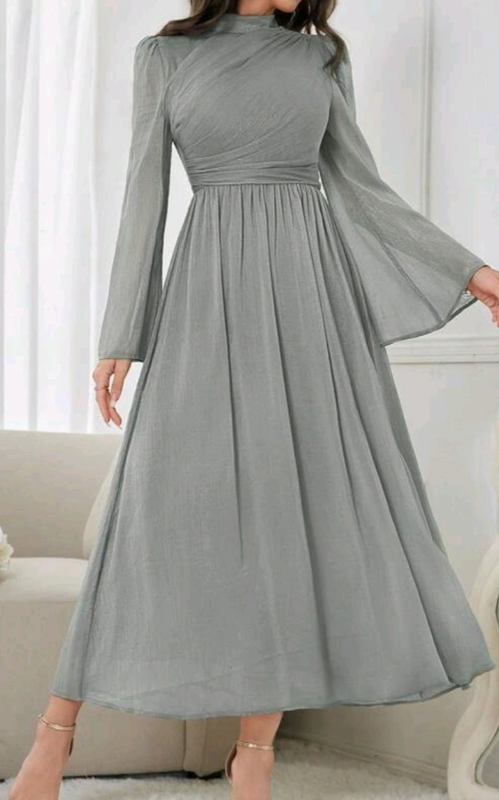 Selling a lovely grey long sleeve maxi dress. It's in great condition and perfect for any occasion! The dress has a flattering silhouette and flowy sleeves. It's made from a comfortable material and would be a great addition to your wardrobe