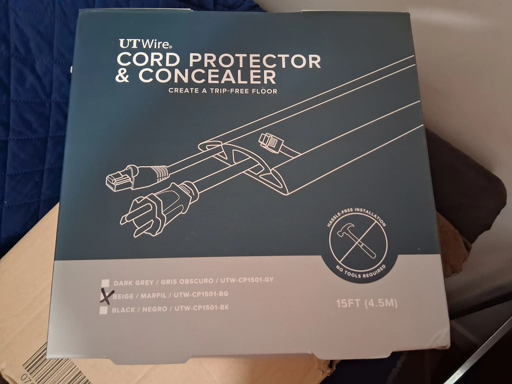 10Selling a UT Wire cord protector and concealer in beige. It's designed to create a trip-free floor and is 15ft (4.5M) long. Hassle-free installation, no tools required!