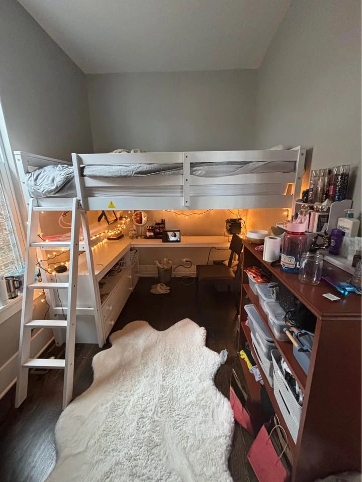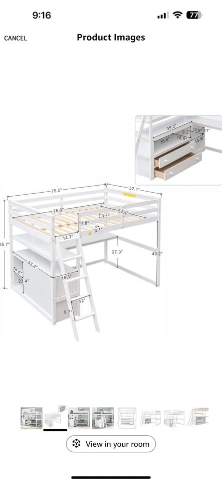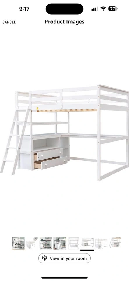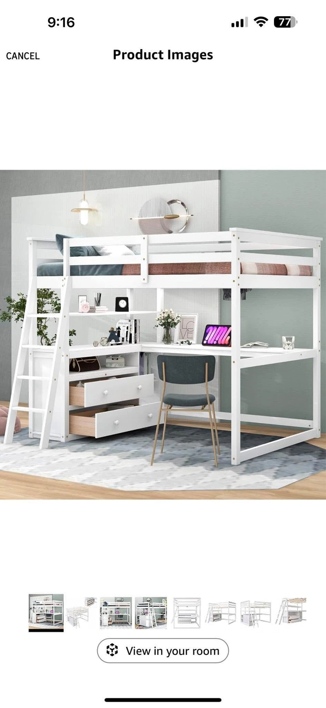 BIADNBZ Full Size Loft Bed with Desk, Storage Shelves and Two Built-in Drawers, Solid Wood High LoftBed Frame for Kids/Teens/Adults, 65.7" H, White