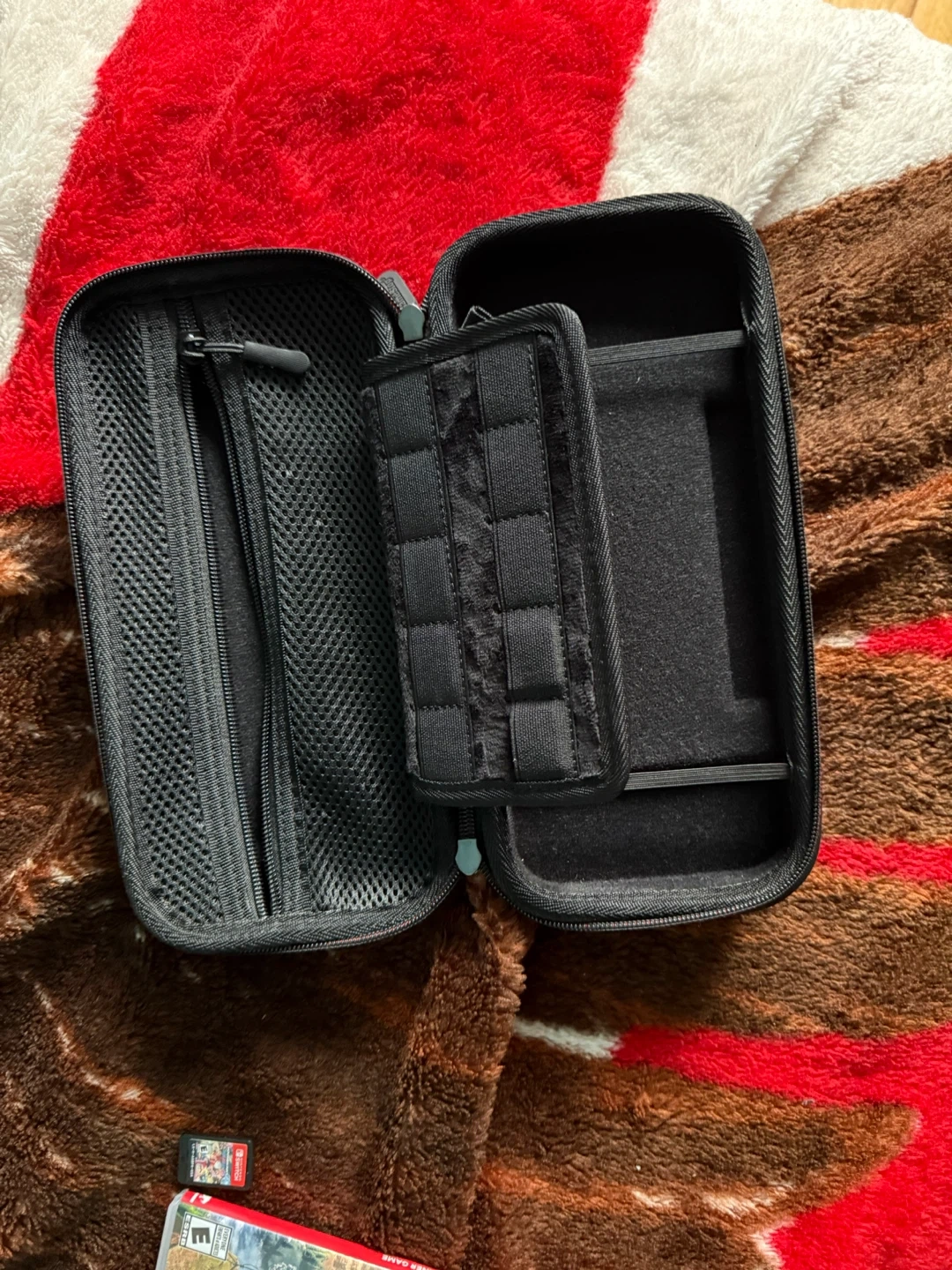 10I'm selling a black GameStop carrying case for the Nintendo Switch. It's in great condition and perfect for keeping your Switch safe on the go! It has compartments for the console, games, and accessories