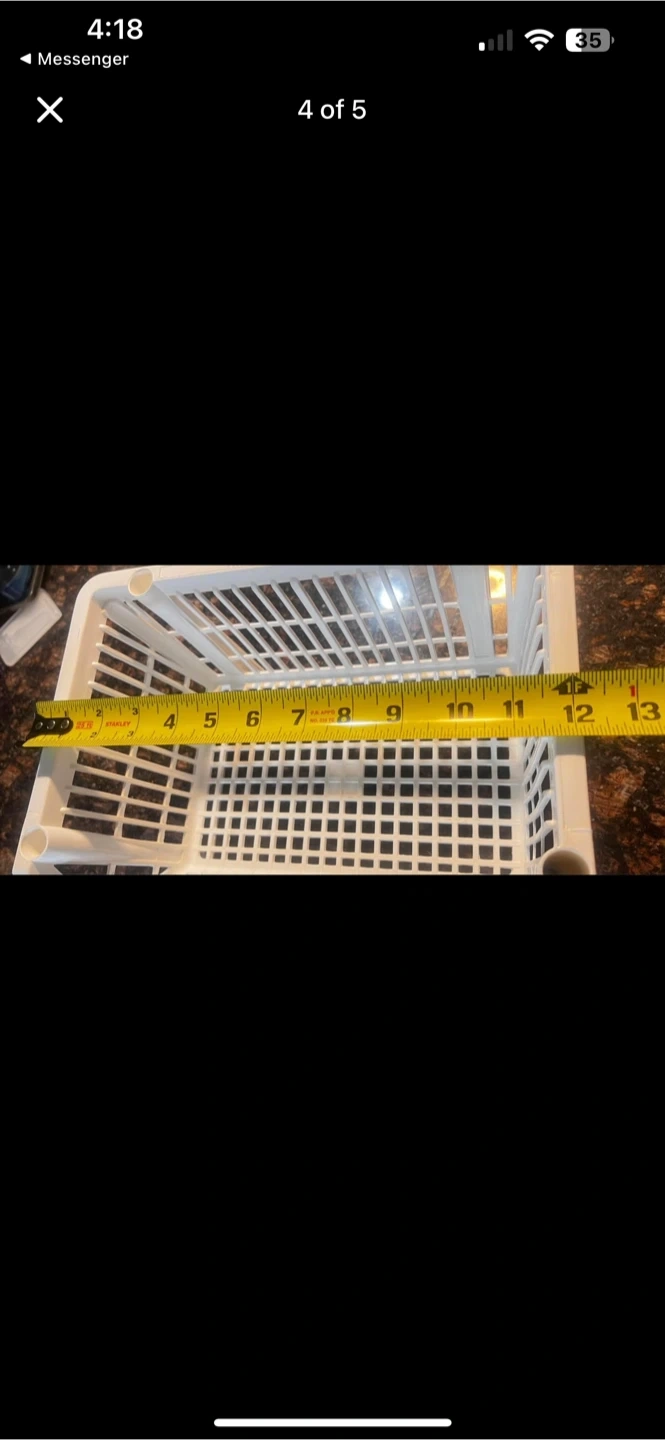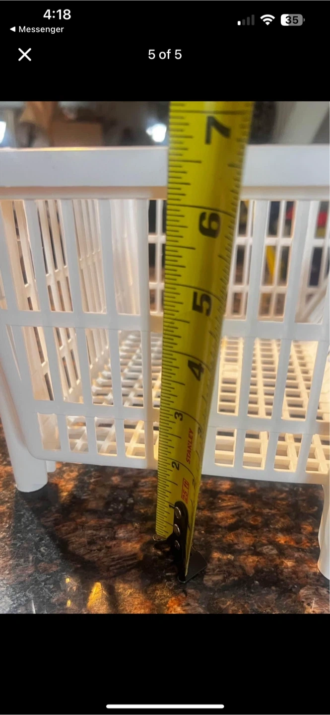 32Selling a white stacking shelf from The Container Store! It's great for organizing your space. It measures approximately 12 inches wide, 10 inches deep, and 6 inches tall