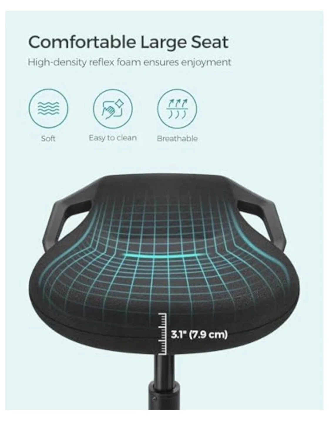 150Selling a Vari Active Seat in black! It's in great condition and ready for a new home. The seat is height adjustable from 23.8" to 33.3" (60-84.5 cm) and has a load capacity of up to 264 lbs. Perfect for improving posture and adding some movement to your workday. Floor friendly and non-slip. Standing desk chair adjustable ergonomic wobble stool, embrace flexibility, max. Load capacity 264 lb. Comfortable large seat, high-density reflex foam ensures enjoyment.