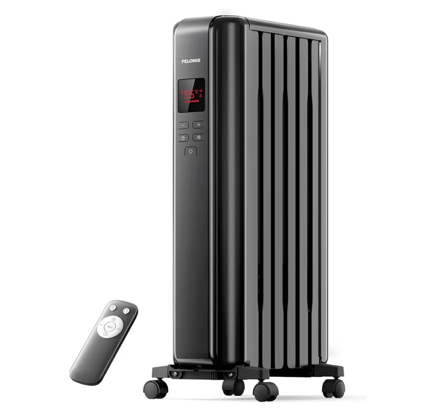 39Stay cozy this winter with the PELONIS Electric Space Heater! This black heater is designed to heat in all directions for all-winter comfort. It features M-shaped fins for a 34.6% increase in thermal area. Enjoy ultimate quiet while you sleep tight with its no-fan, no-noise operation. It also has a 24-hour timer and provides house-filled comfort indeed, with a max coverage of 300ft²