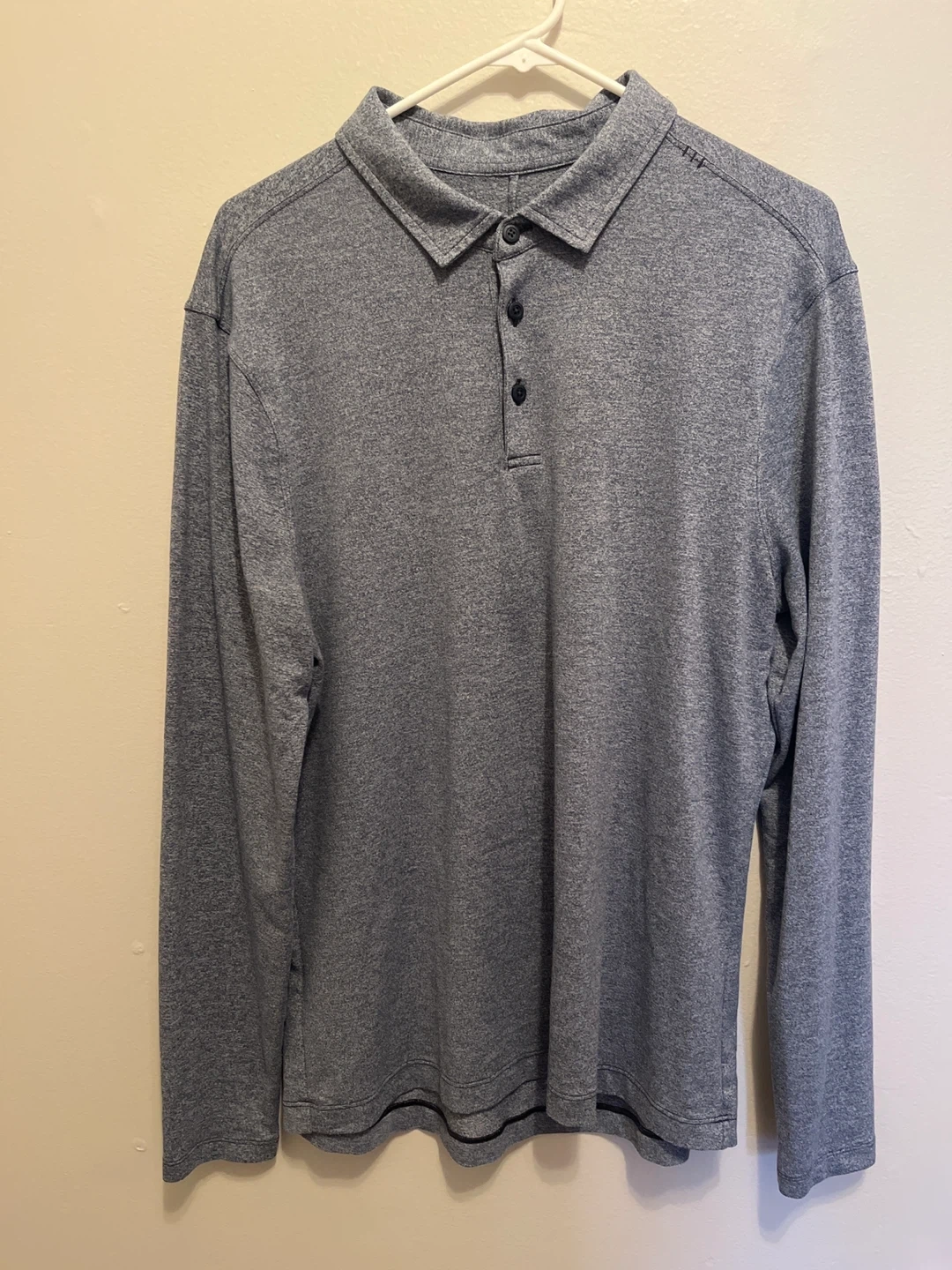 10Selling a Lululemon long sleeve polo shirt in gray. It's in great condition and ready for a new home! Perfect for casual wear or a light workout.