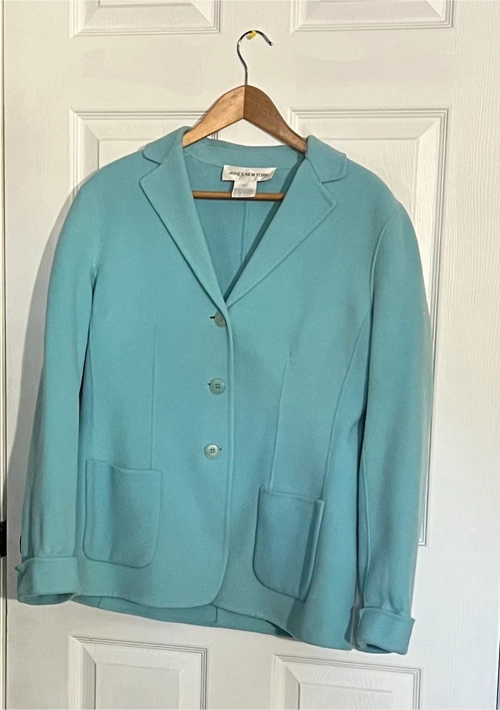 Selling a Jones New York blazer in a lovely light blue color. It's a size 12 and in great condition! Perfect for adding a touch of sophistication to any outfit