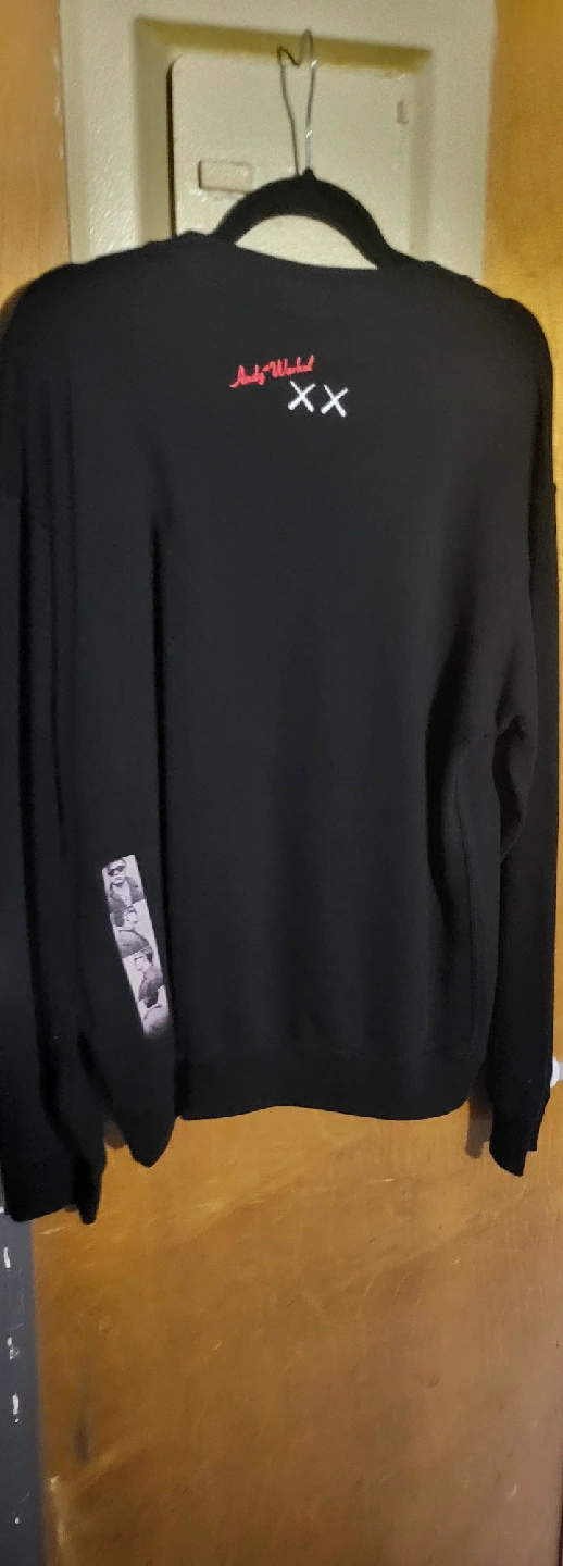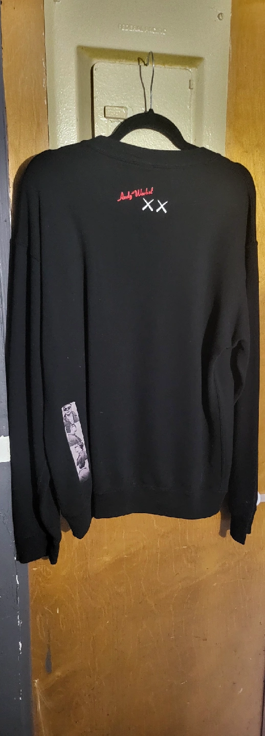 62Selling a Uniqlo UT sweatshirt featuring a Kaws x Andy Warhol design! It's black and in great condition. The design on the front is super cool, and there's a small Andy Warhol logo on the back. Perfect for casual wear!