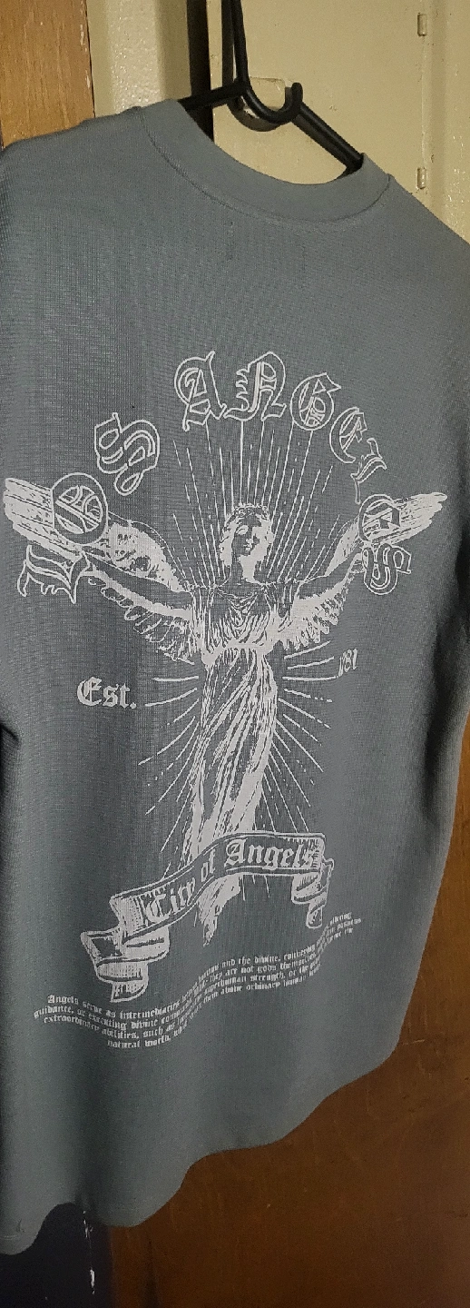 62A gray/green t-shirt featuring the 'City of Angels' design. It has a cool, vintage-inspired graphic on the front and back. Perfect for casual wear!