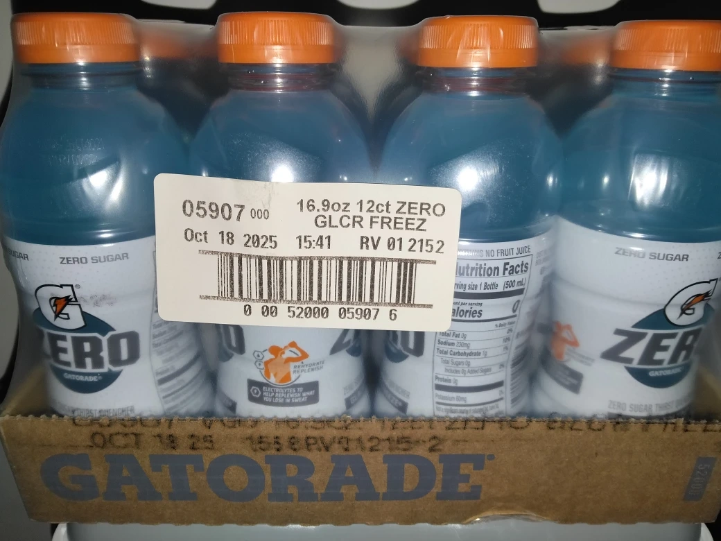 12Selling a 12-pack of Gatorade Zero Glacier Freeze. Each bottle is 16.9oz and has zero sugar. Expiration date is October 18, 2025